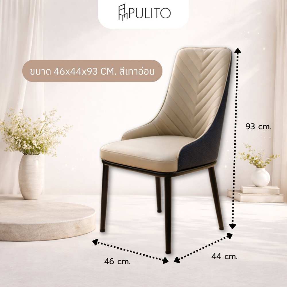 PULITO เก้าอี้รับประทานอาหาร รุ่น FERGUS ขนาด 46x44x93 ซม. สีเทาอ่อน