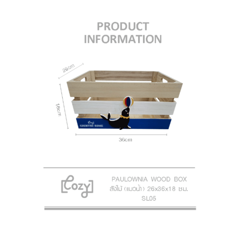 COZY ลังไม้ (แมวน้ำ) 26×36×18 ซม. SL05