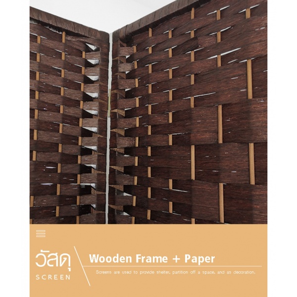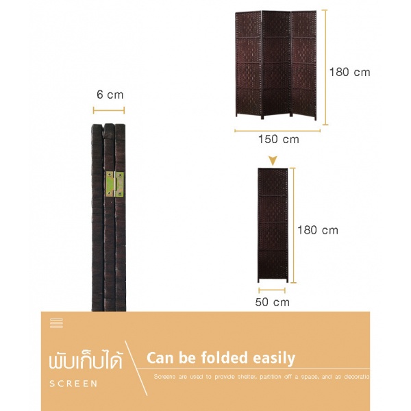 Delicato ฉากกั้นห้อง 3 บาน ขนาด 150X180X2ซม.สีน้ำตาลเข้ม