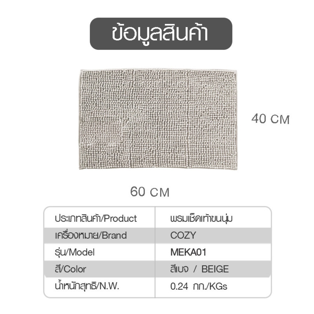 พรมเช็ดเท้าขนนุ่ม Cozy ขนาด 40×60×1.1ซม. สีเบจ