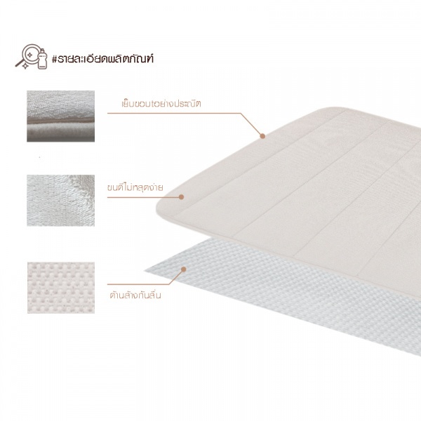 2. ผลิตจากผ้าไมโครไฟเบอร์ วัสดุคุณภาพดี ให้ความรู้สึกที่สบายผิวเมื่อเท้าสัมผัส