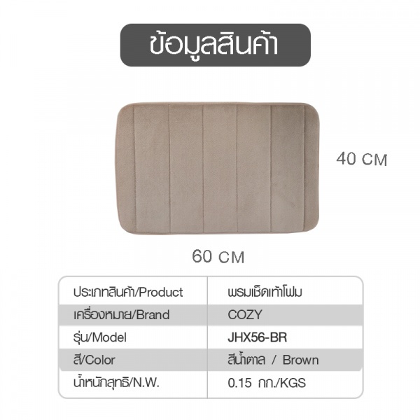 พรมเช็ดเท้าโฟม Cozy ขนาด 40×60×1.2ซม. สีน้ำตาล