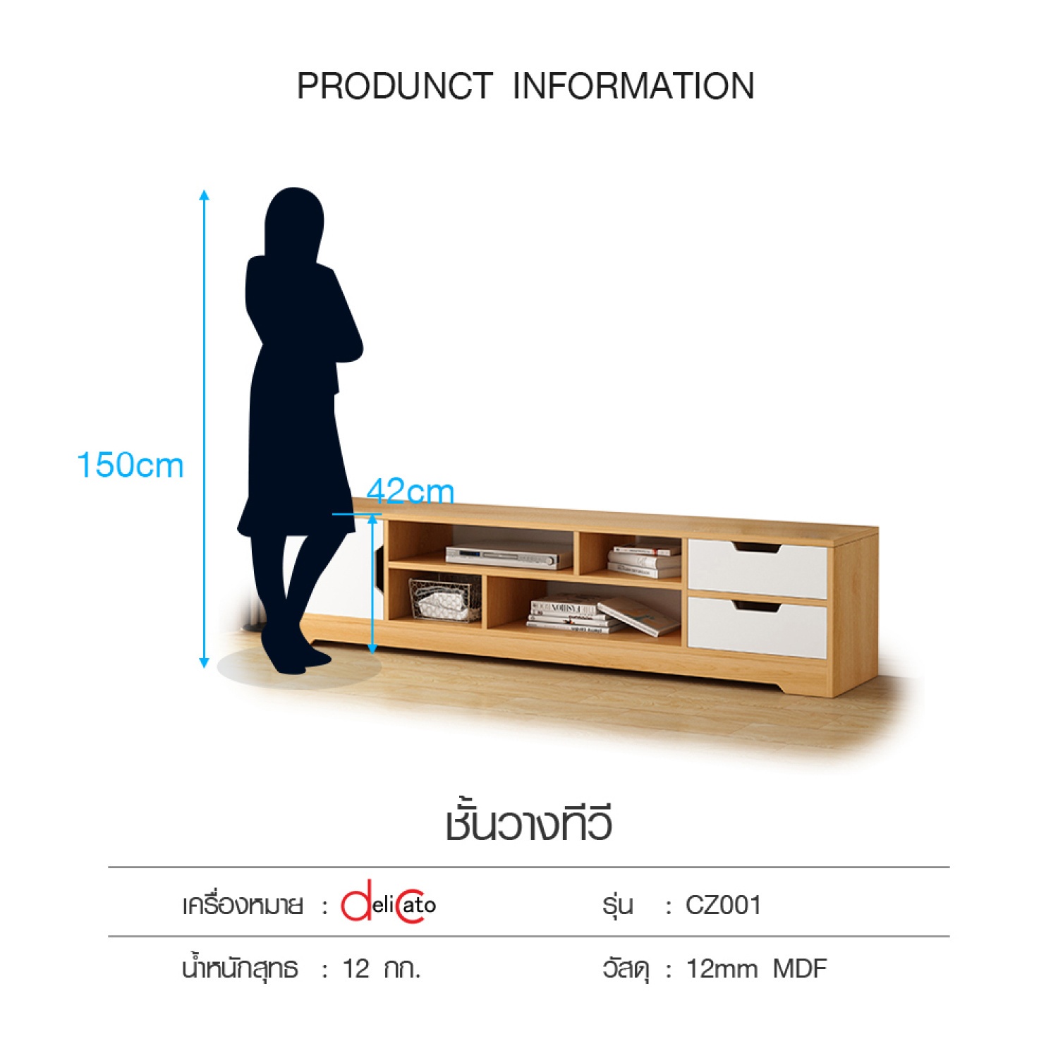 | รุ่น | CZ001 สีขาว-นํ้าตาล (เหมาะสำหรับทีวีขนาด 40-50 นิ้ว) |