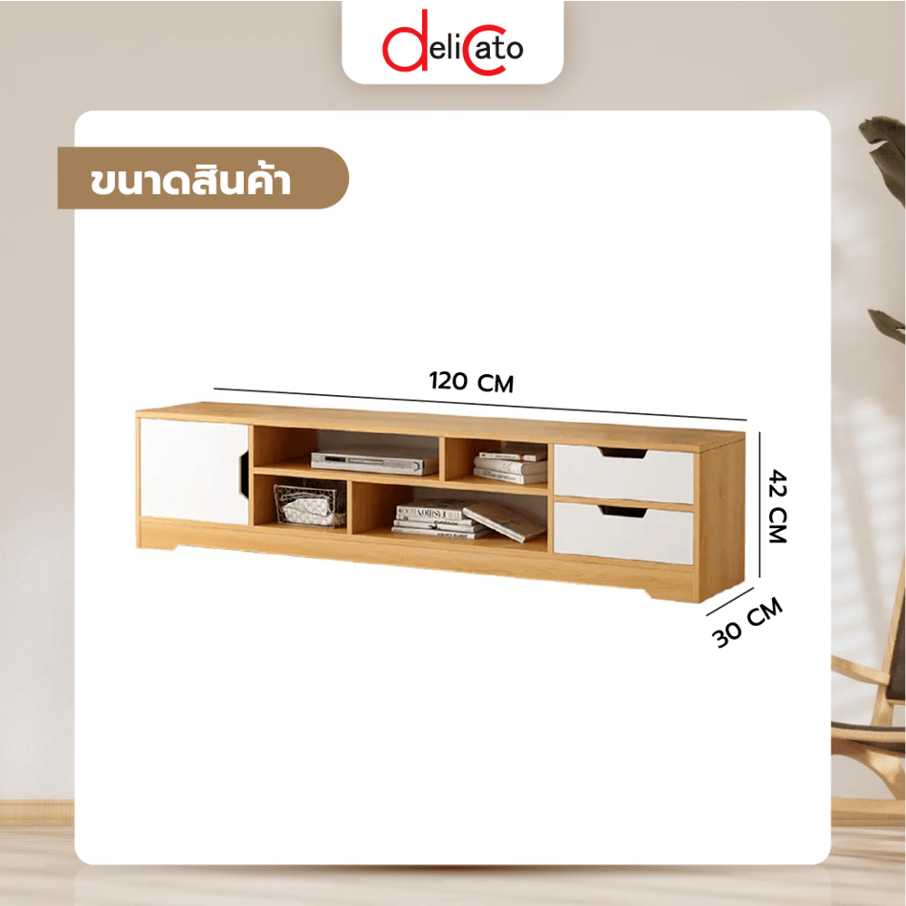 Delicato ชั้นวางทีวี รุ่น CZ001 ขนาด 30x120x42ซม. สีขาว-นํ้าตาล (เหมาะสำหรับทีวีขนาด 40-50 นิ้ว)