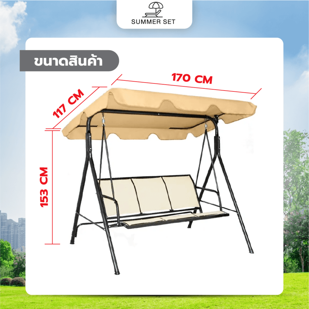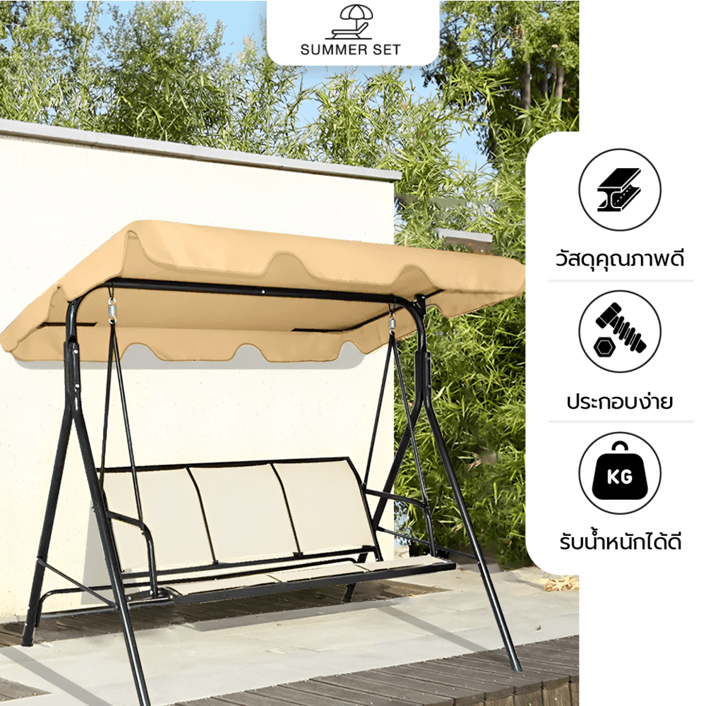 SUMMER SET ชิงช้าสนาม 3 ที่นั่ง รุ่น HWT003S ขนาด117×170×153ซม. สีเบจ