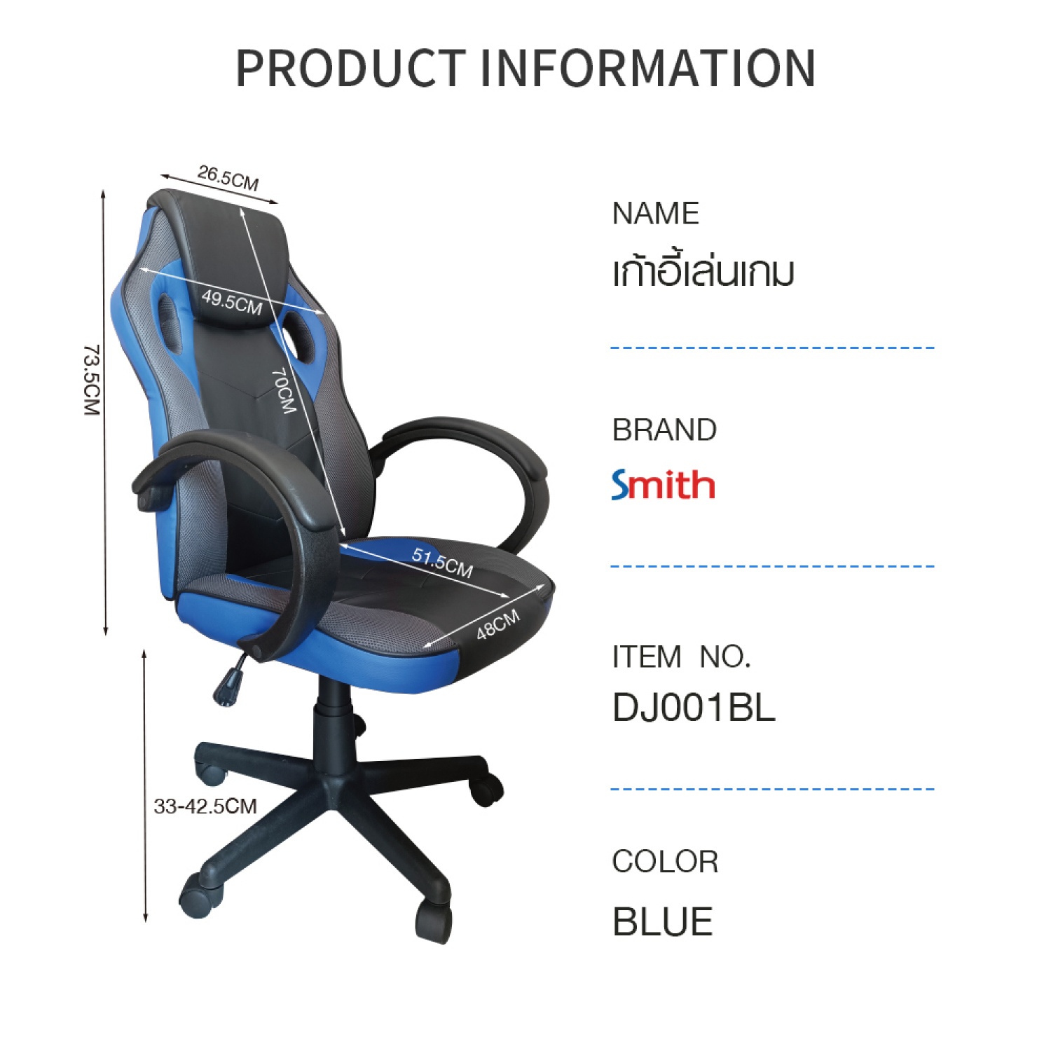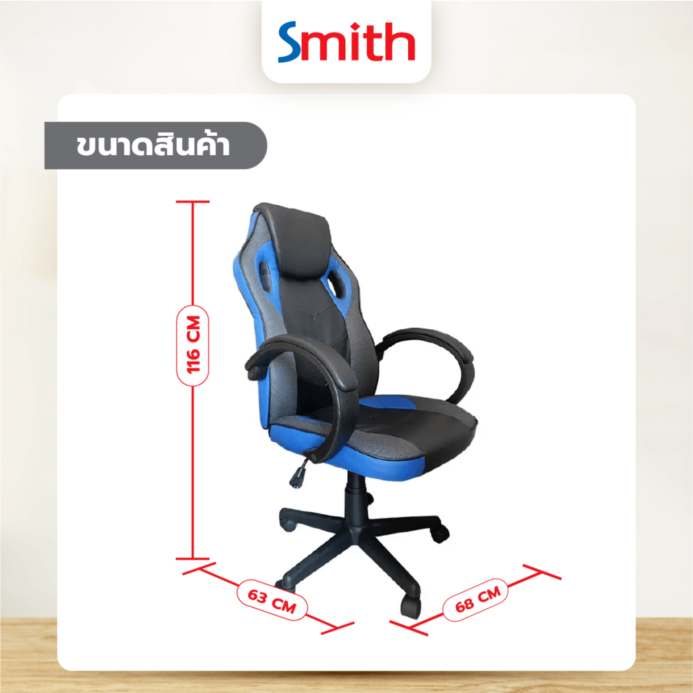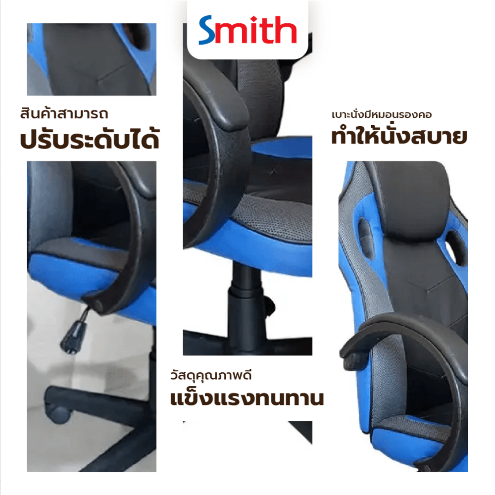 SMITH เก้าอี้เล่นเกม รุ่น DJ001BL ขนาด 63x68x116ซม. สีนํ้าเงิน