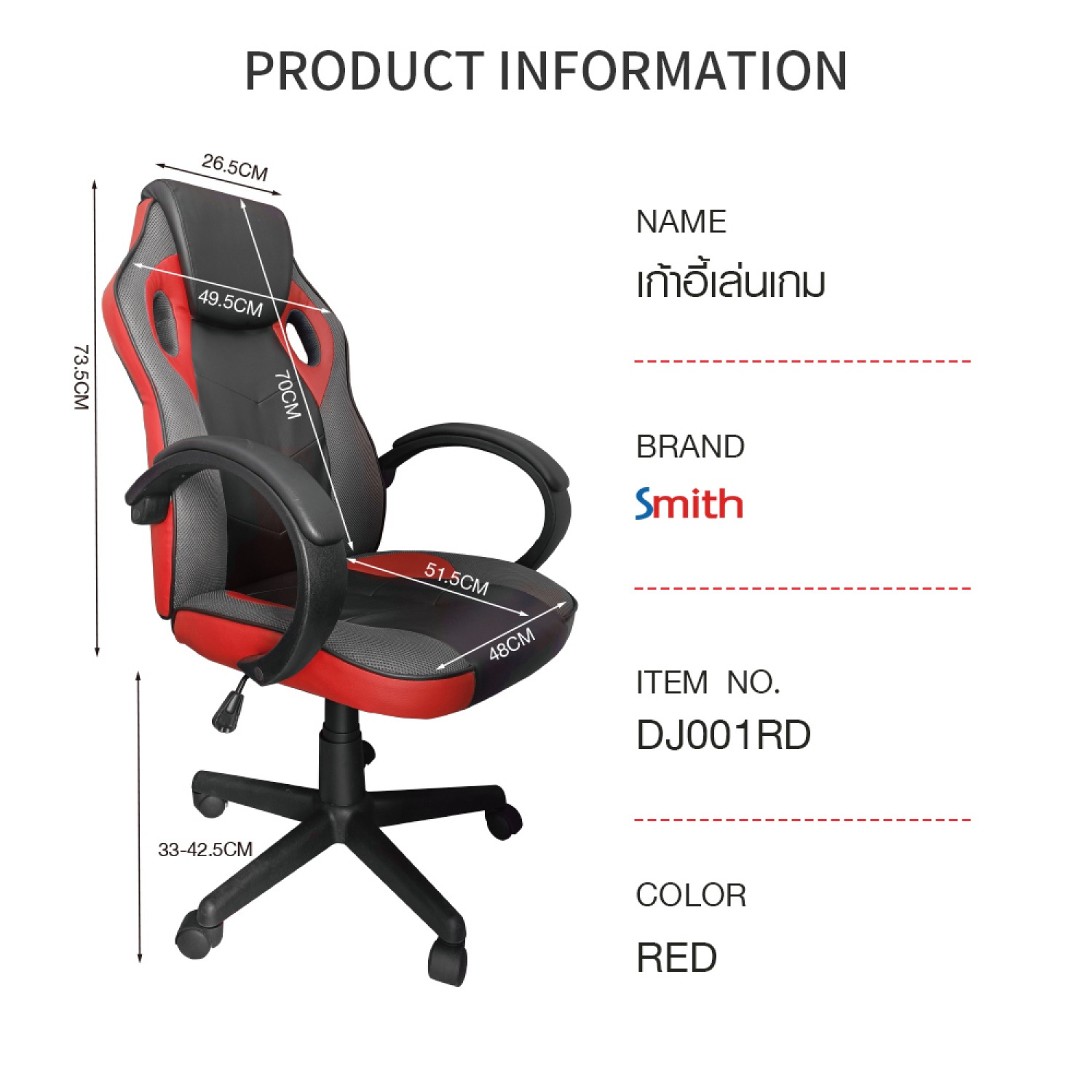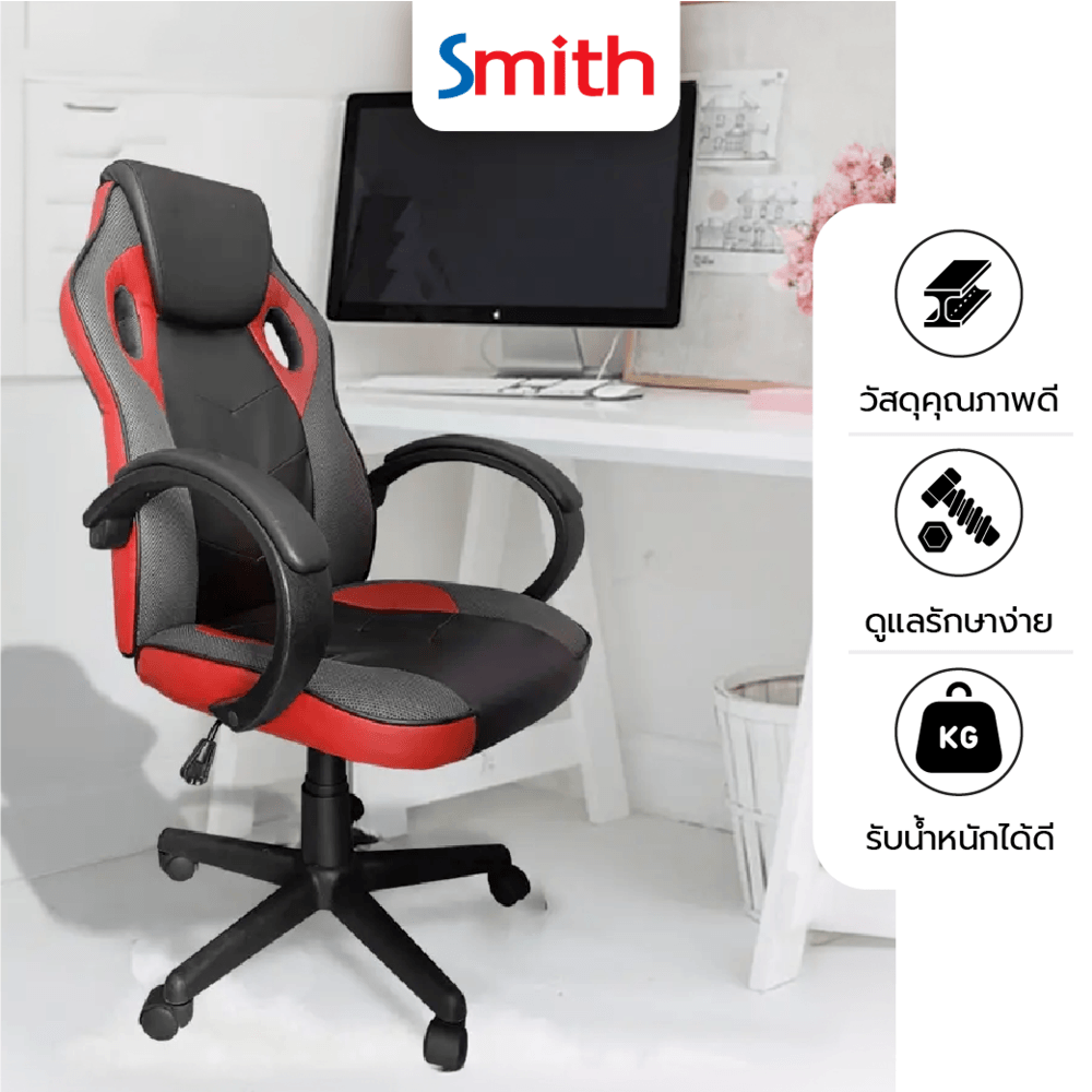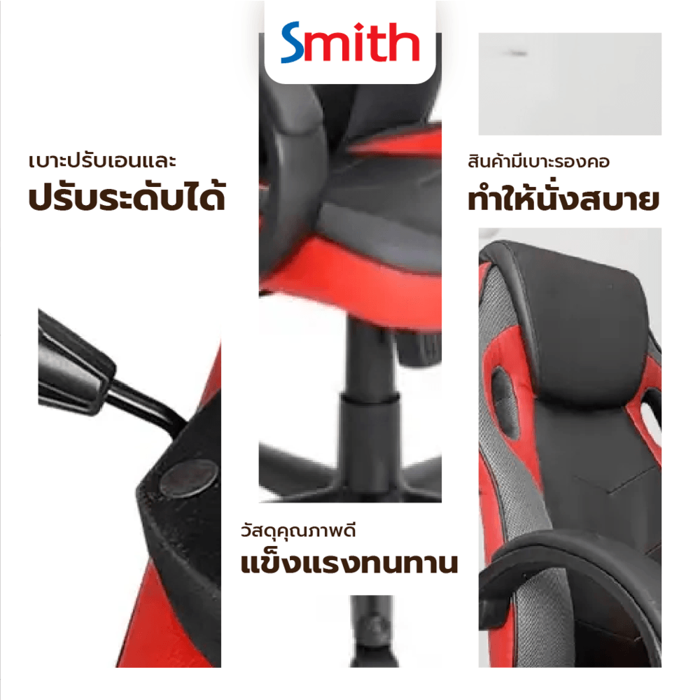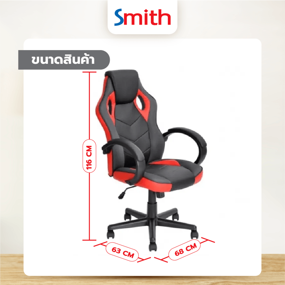 SMITH เก้าอี้เล่นเกม รุ่น DJ001RD ขนาด 63x68x116ซม. สีแดง