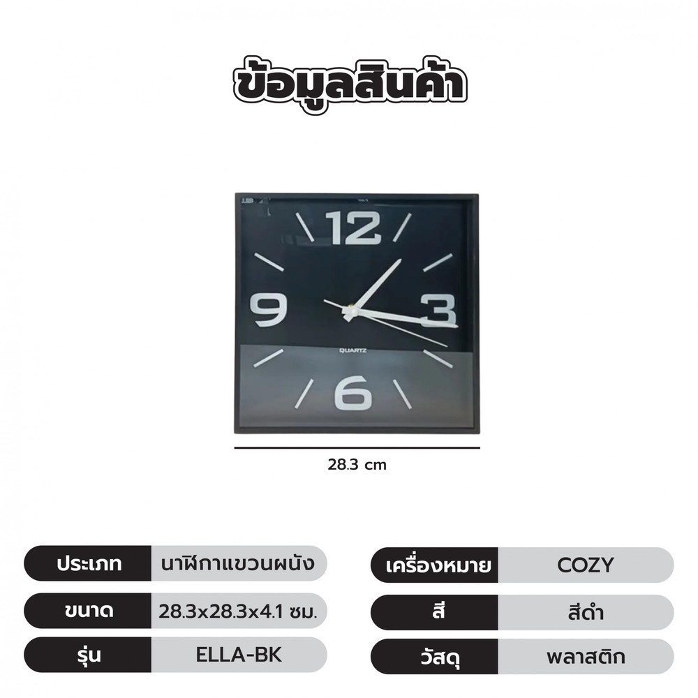 COZY นาฬิกาแขวนทรงเหลี่ยม รุ่น ELLA-WH ขนาด 28.3x28.3x4.1ซม. สีขาว