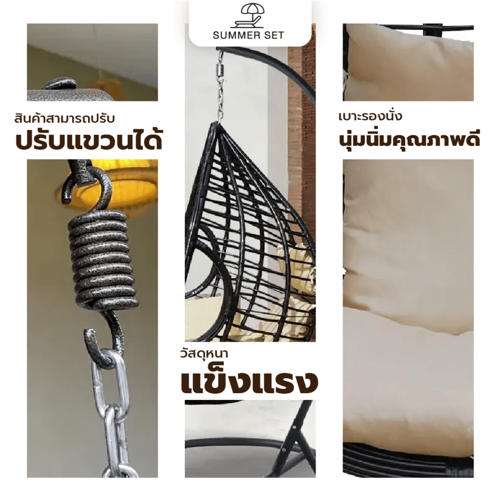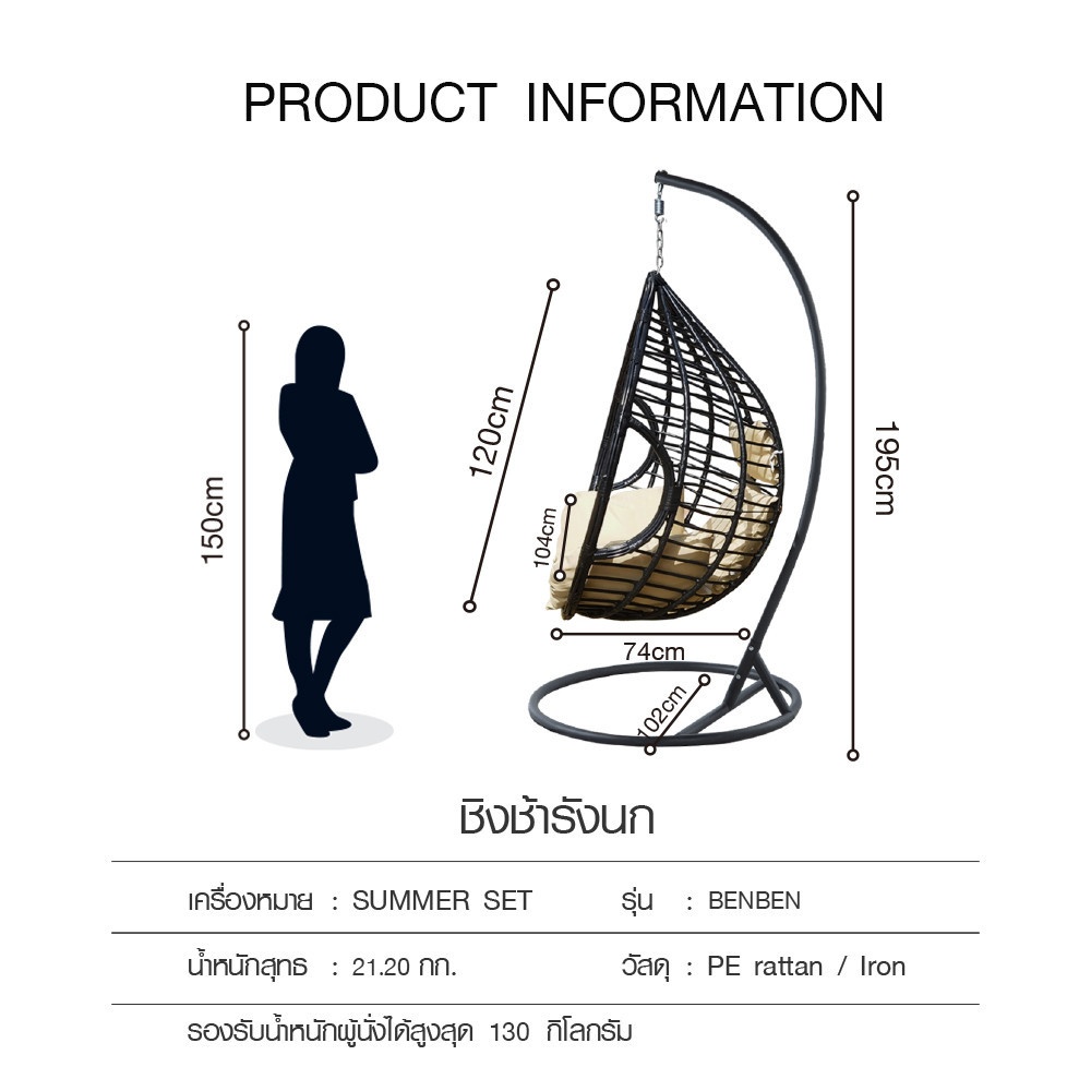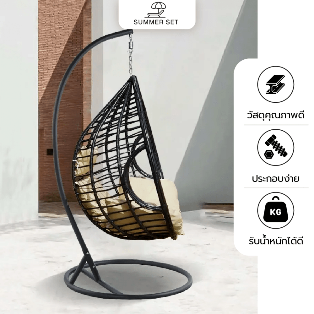 SUMMER SET ชิงช้ารังนก รุ่น BENBEN ขนาด 68×107×115 ซม. สีดำ