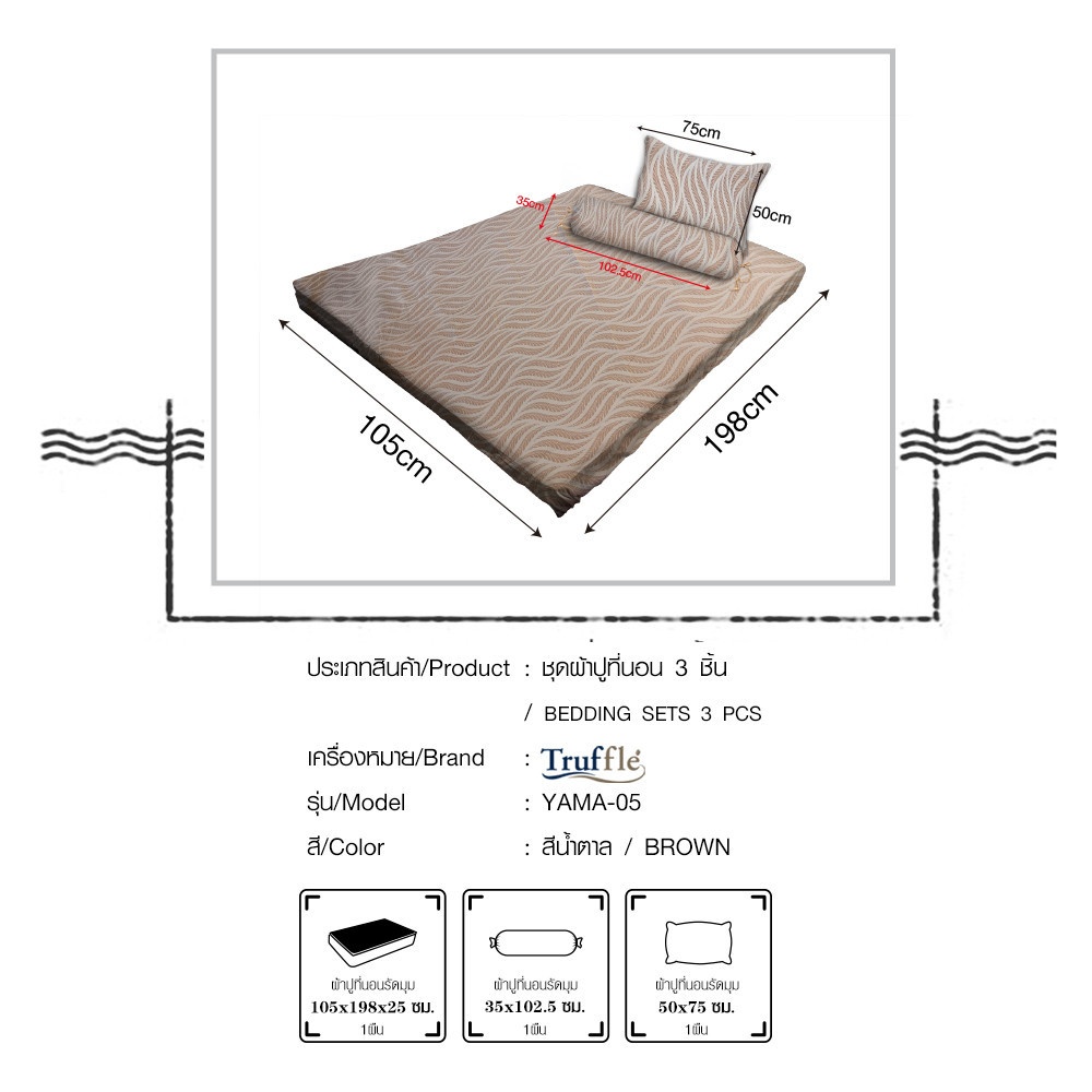 Truffle ชุดผ้าปูที่นอน 3 ชิ้น ขนาด 3.5 ฟุต รุ่น YAMA-05 สีน้ำตาล