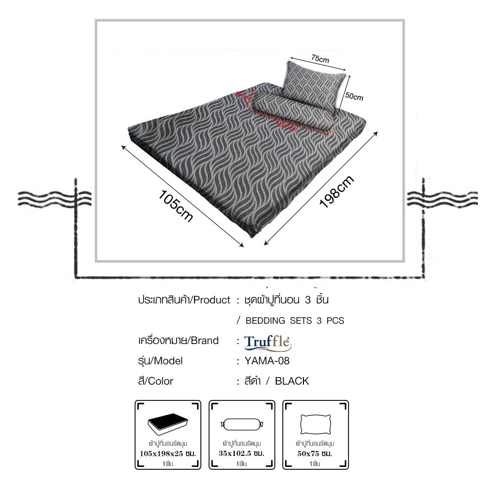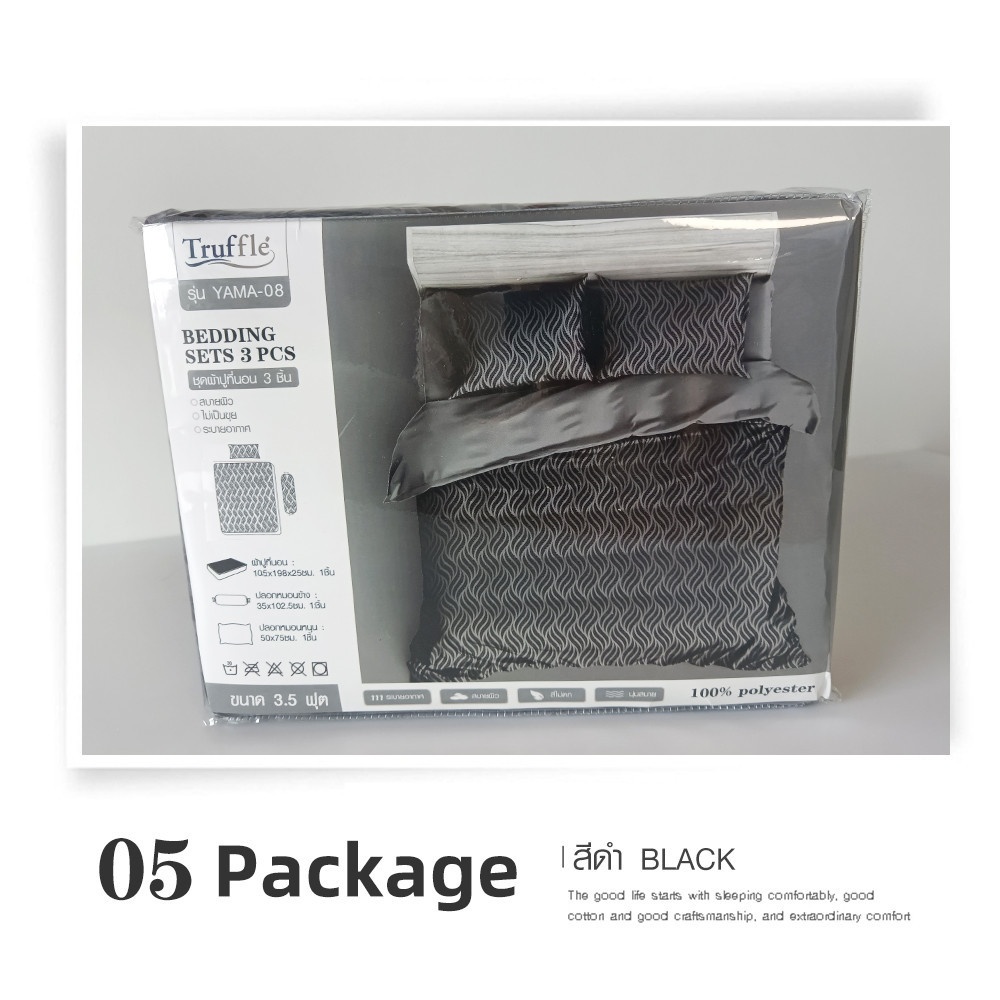 Truffle ชุดผ้าปูที่นอน 3 ชิ้น ขนาด 3.5 ฟุต รุ่น YAMA-08 สีดำ