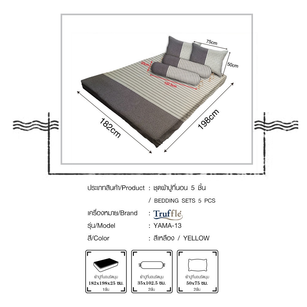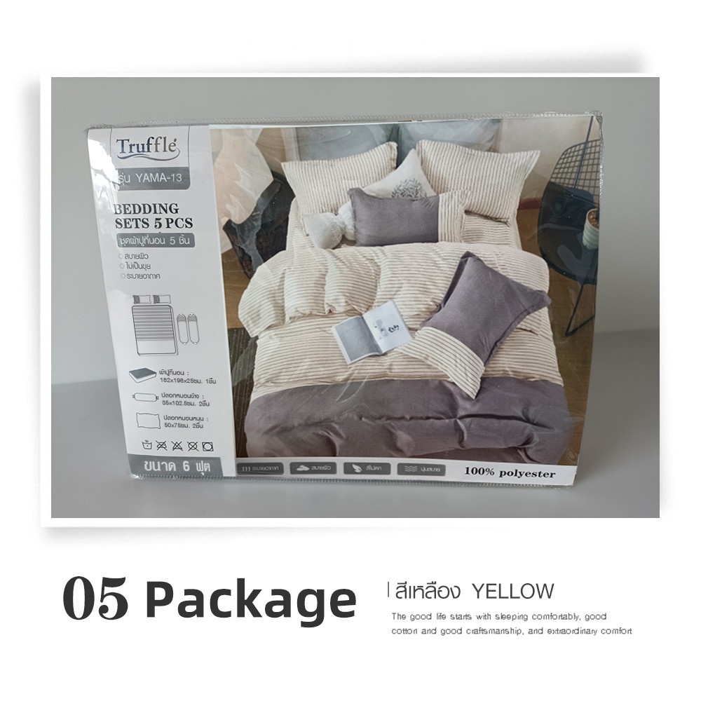 Truffle ชุดผ้าปูที่นอน 5 ชิ้น ขนาด 6 ฟุต รุ่น YAMA-13 สีเหลือง