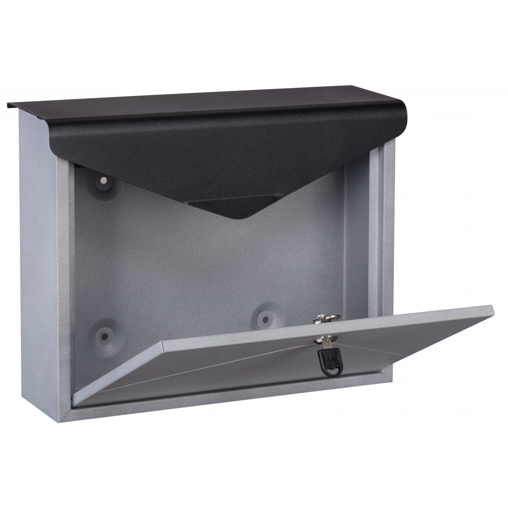 ตู้จดหมาย W1603 สีดำ-เงินตู้จดหมายสแตนเลส ดีไซน์เรียบหรู มาพร้อมกุญแจล็อคช่วยป้องกันการสูญหายของจดหมาย ป้องกันจดหมายเสียหายจากน้ำฝน แข็งแรง ทนทาน ป้องกันสนิมได้ ทำความสะอาดง่าย และติดตั้งสะดวก