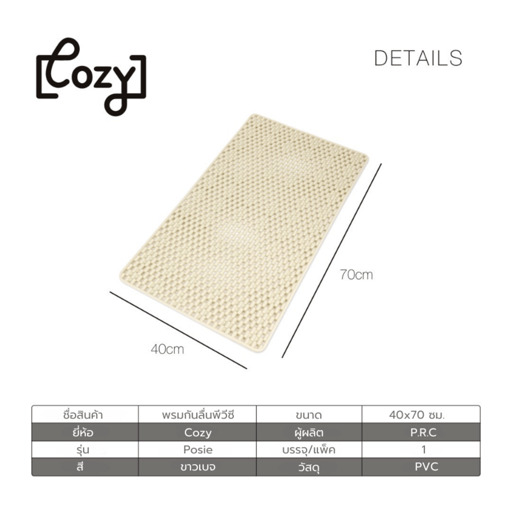 Cozy พรมกันลื่นพีวีซี รุ่น Posie ขนาด 40*70 cm สีขาวเบจ