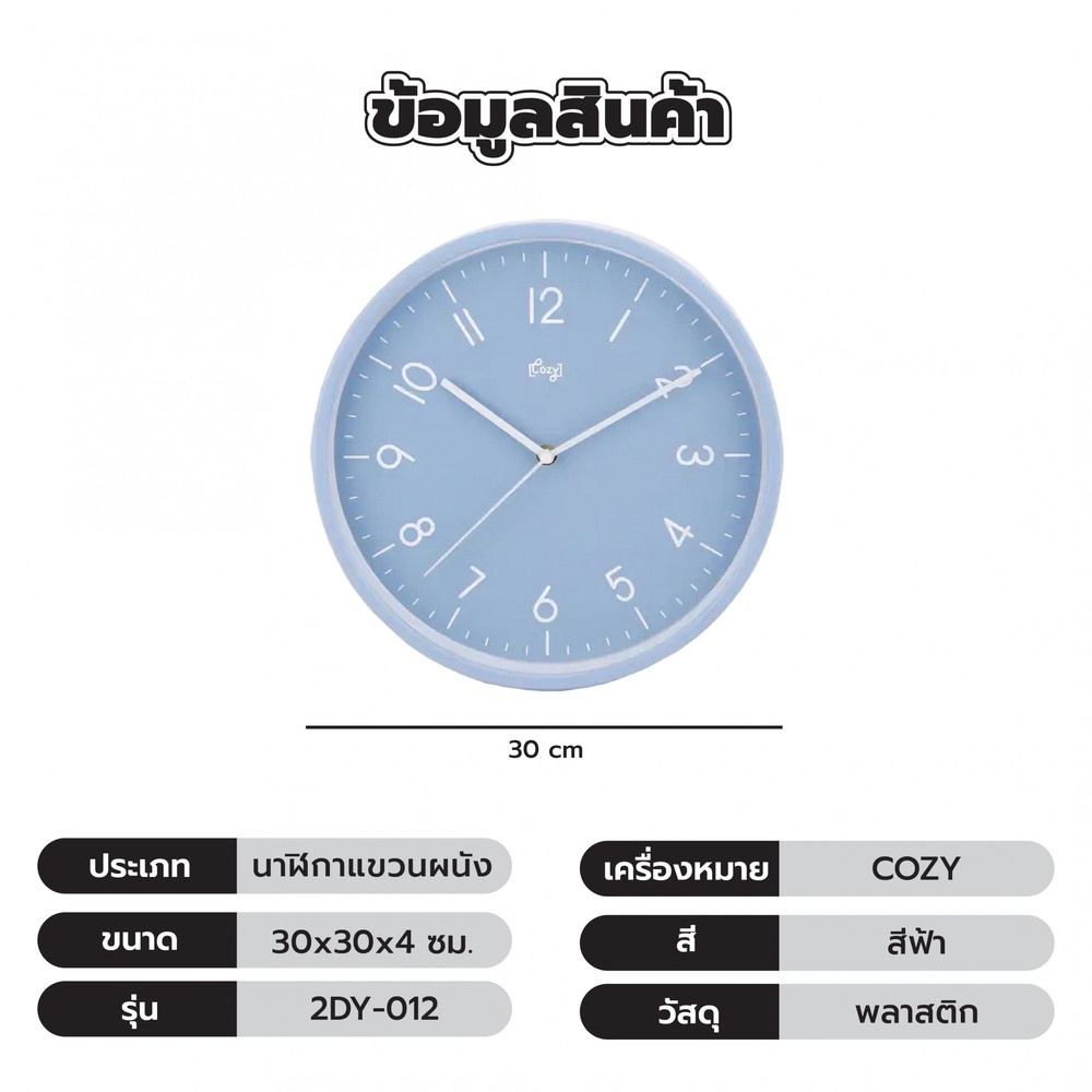 COZY นาฬิกาแขวนผนัง 30ซม. รุ่น 2DY-012 สีฟ้า
