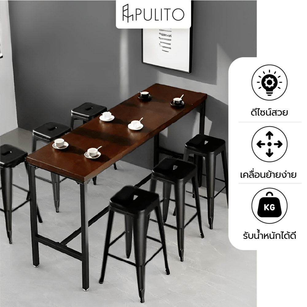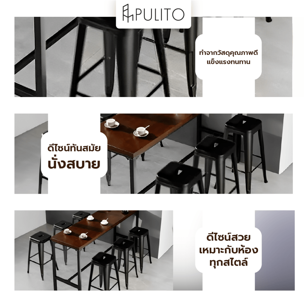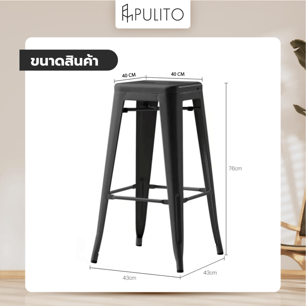 PULITO สตูลสูงเหล็ก รุ่น BC-015 ขนาด 43×40x76ซม. สีดำ