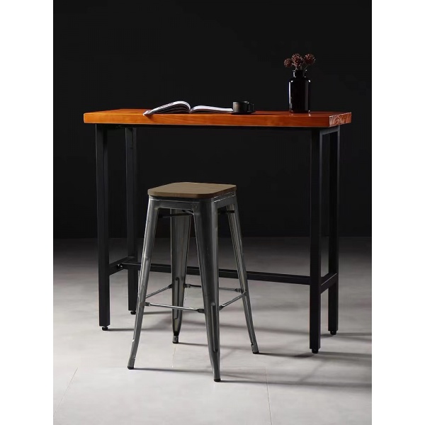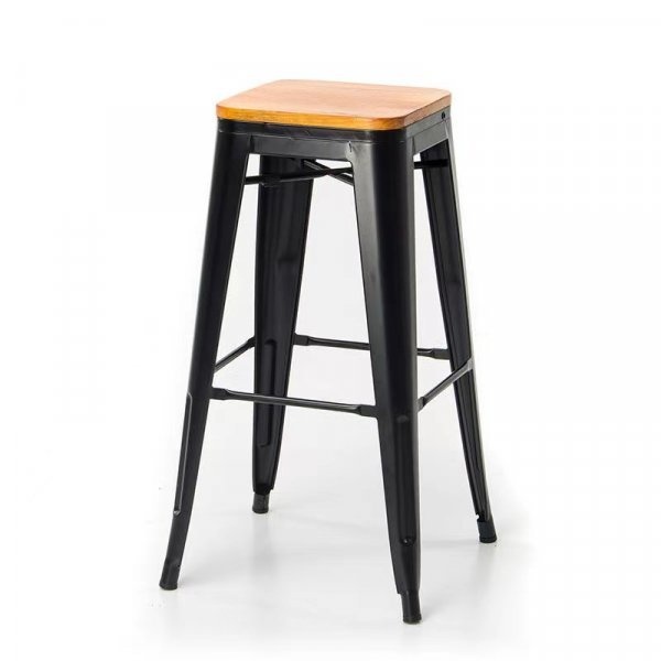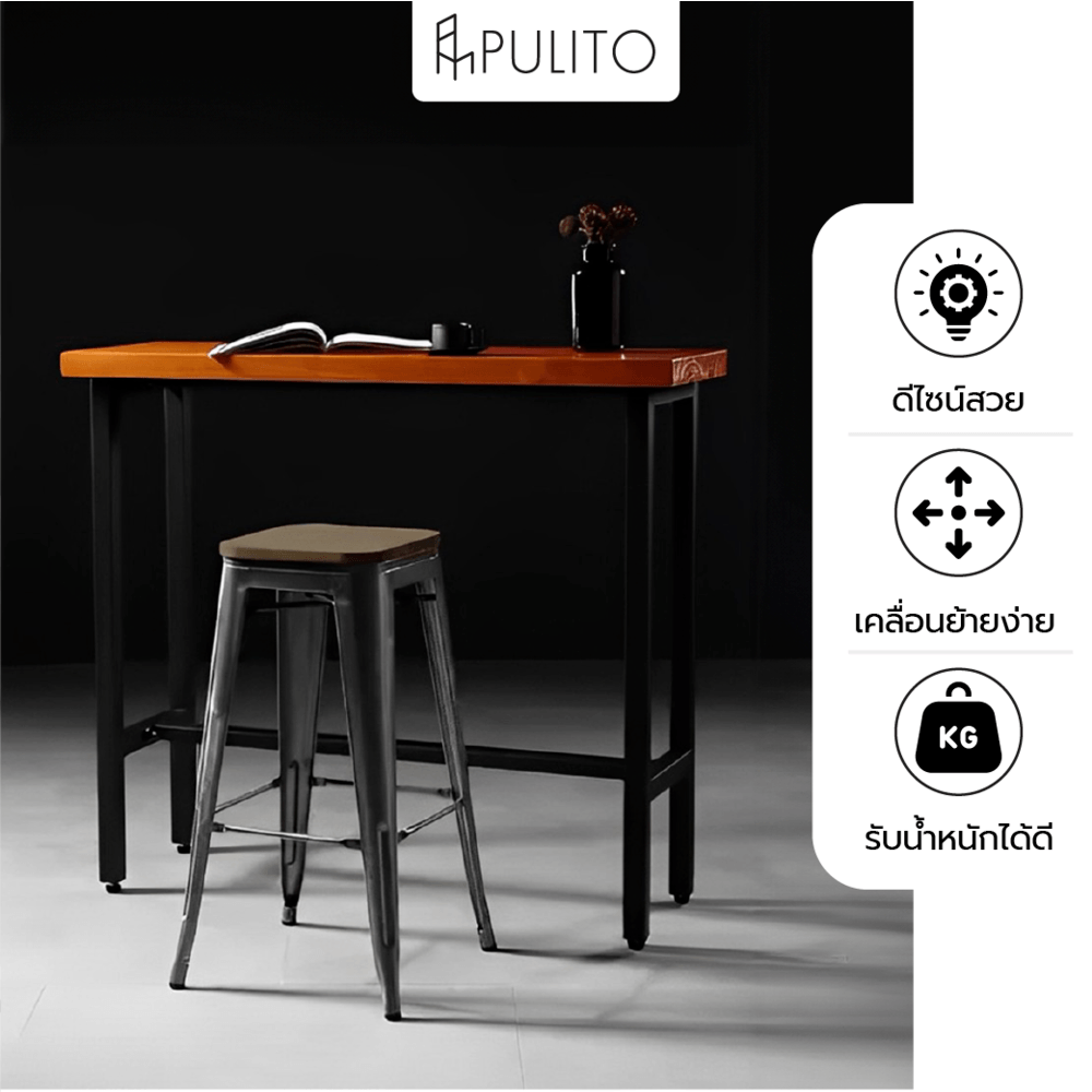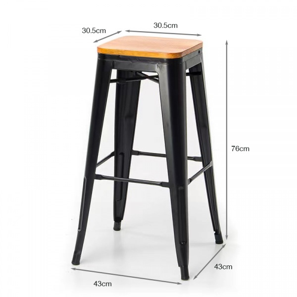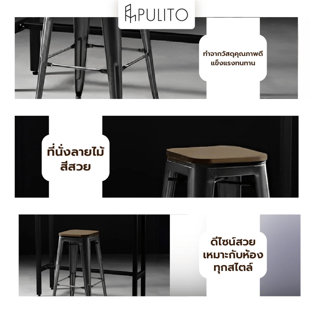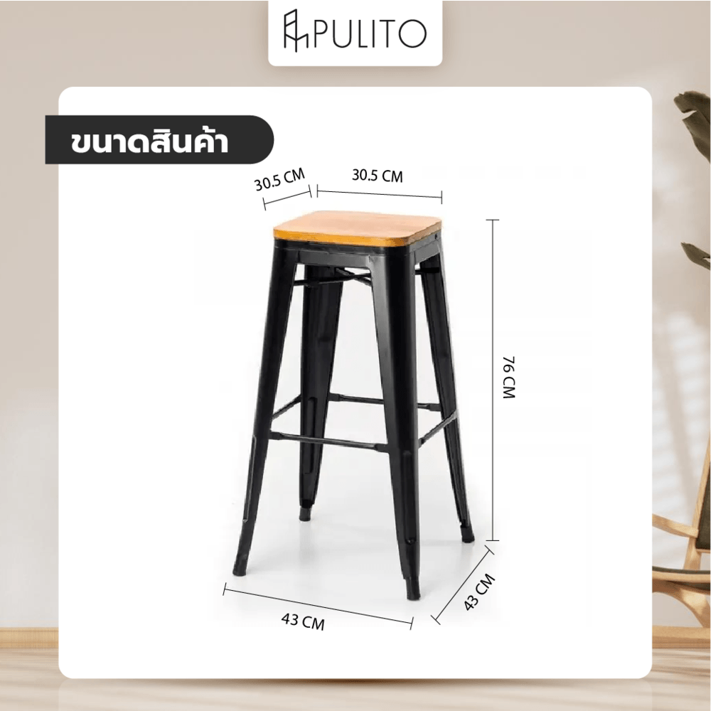PULITO สตูลสูงเหล็ก ที่นั่งไม้ รุ่น BC-001 ขนาด 30.5×43×76ซม. สีดำ