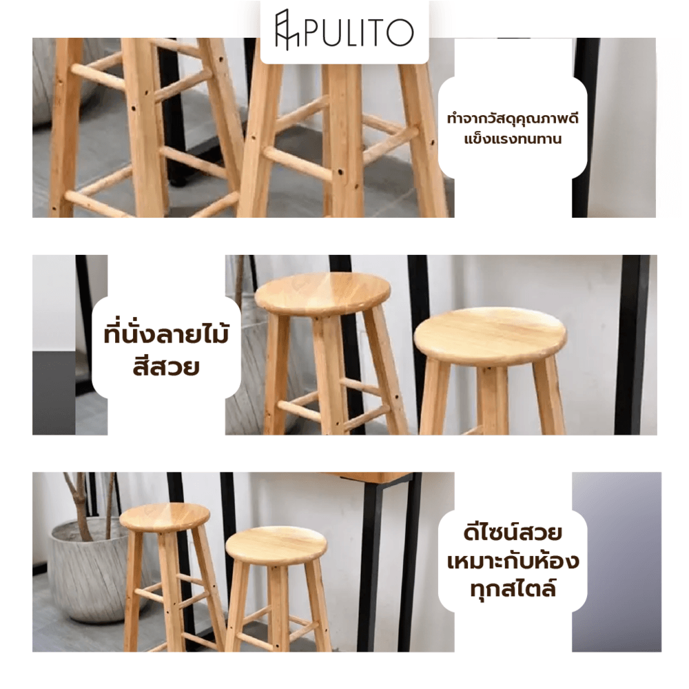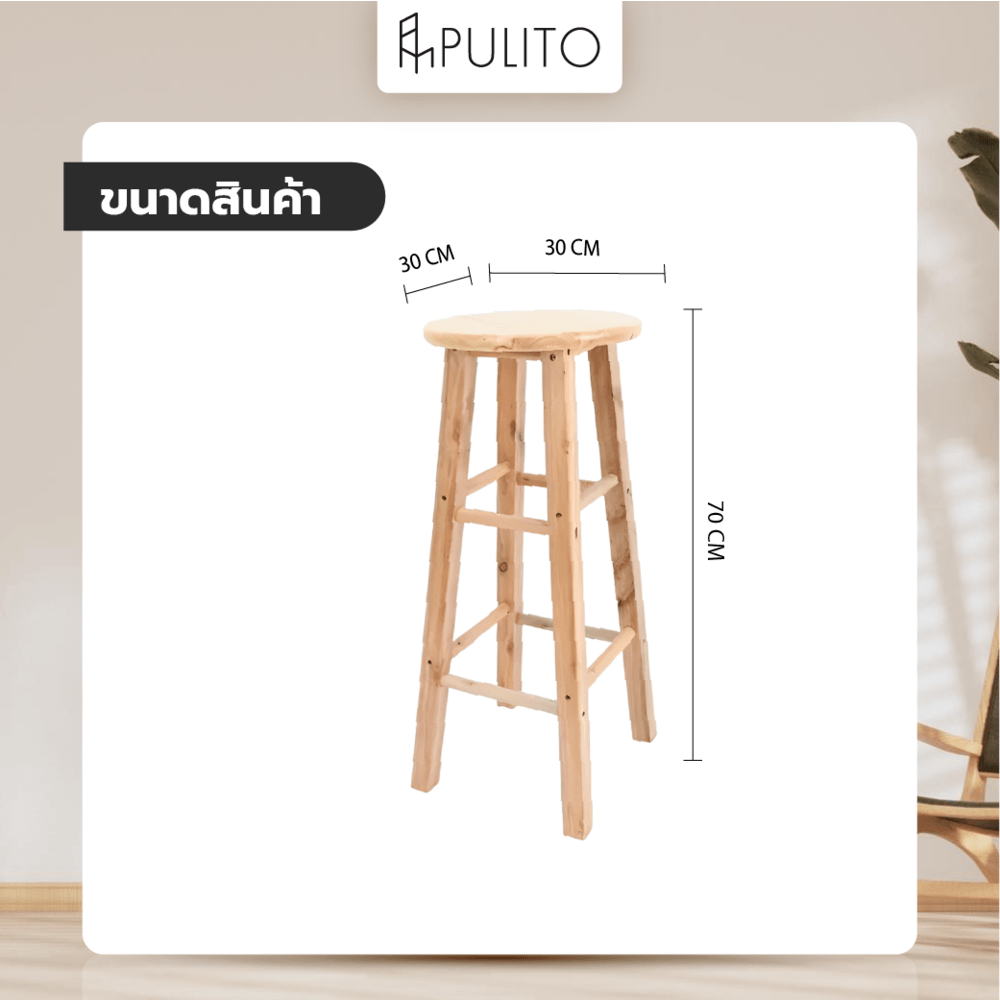 PULITO เก้าอี้บาร์ไม้ยางพารา รุ่น BC-004 ขนาด 30×30x70ซม. สีไม้