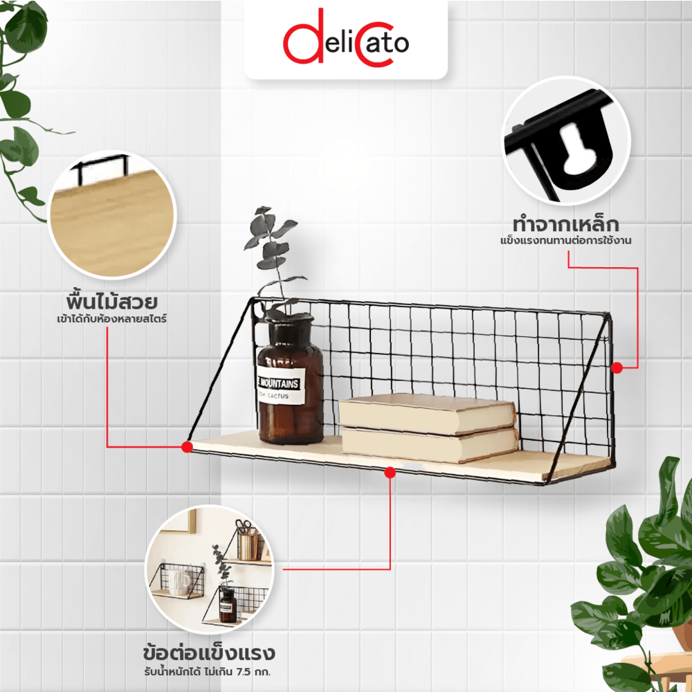 DELICATO ชั้นติดผนัง รุ่น SANTIR-03 ขนาด 35x12x18 ซม. สีดำ