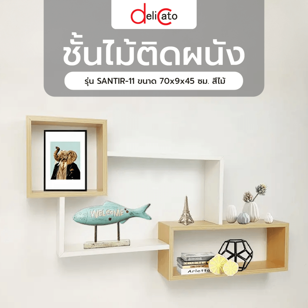 การติดชั้นไม้แบบนี้ทำให้ผนังบ้านดูมีชีวิตชีวาและมีมิติมากขึ้น สามารถใช้โชว์ของตกแต่ง เช่น หนังสือ รูปภาพ หรือของที่สะสม ให้กลายเป็นส่วนหนึ่งของการตกแต่งบ้าน