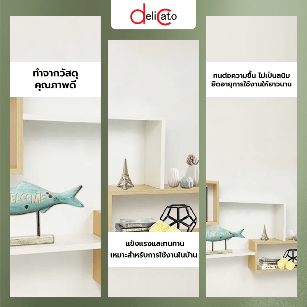 ชั้น DELICATO ผลิตจากไม้MDFที่มีคุณภาพความแข็งแรง สามารถรับน้ำหนักได้ดี เหมาะสำหรับวางของใช้ที่มีน้ำหนักปานกลางได้อย่างปลอดภัย