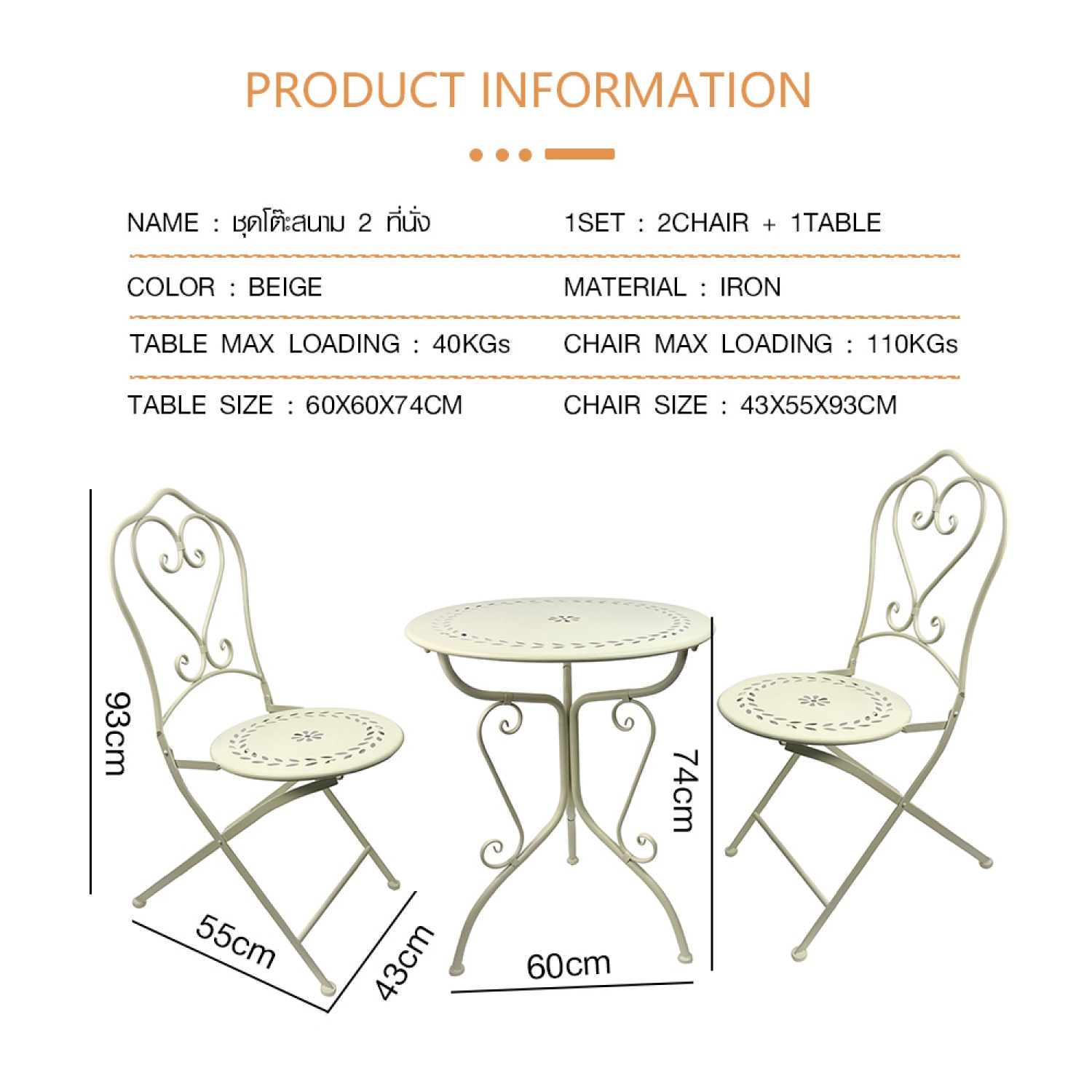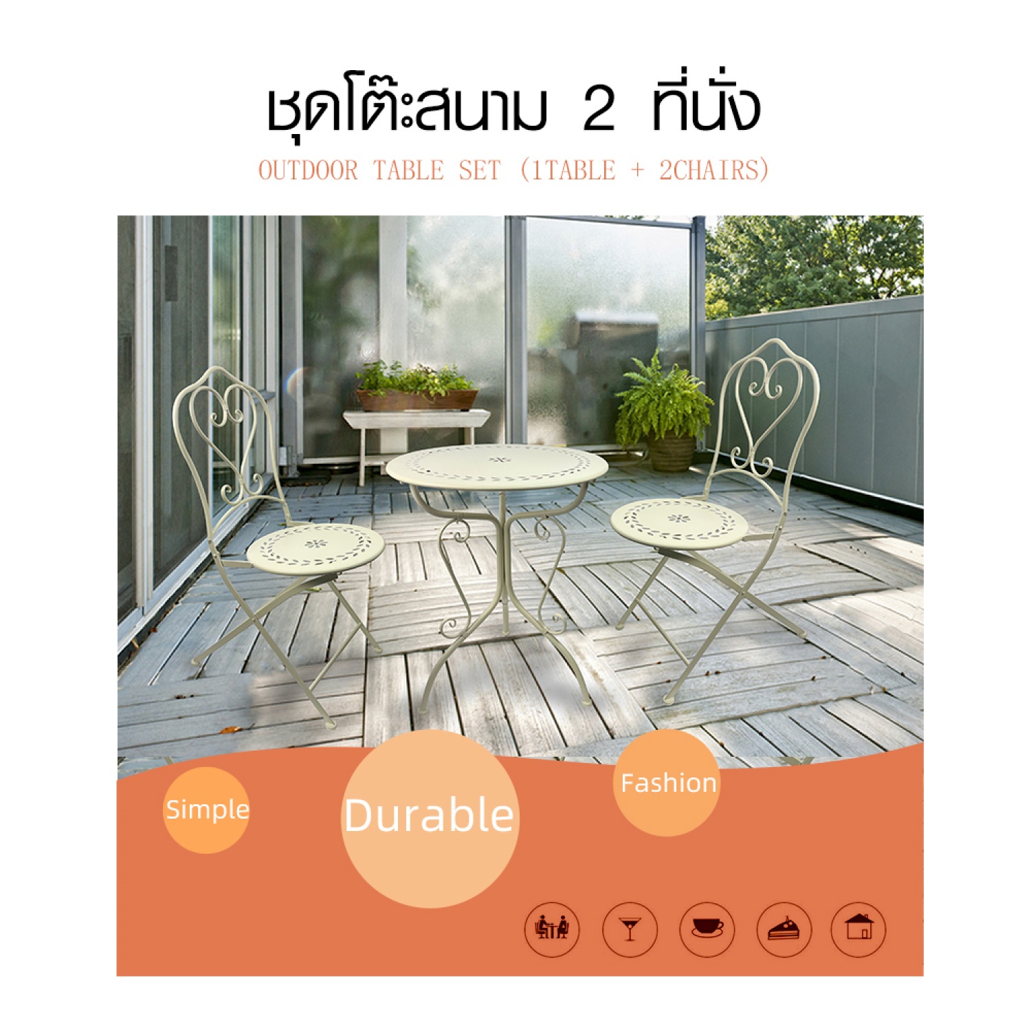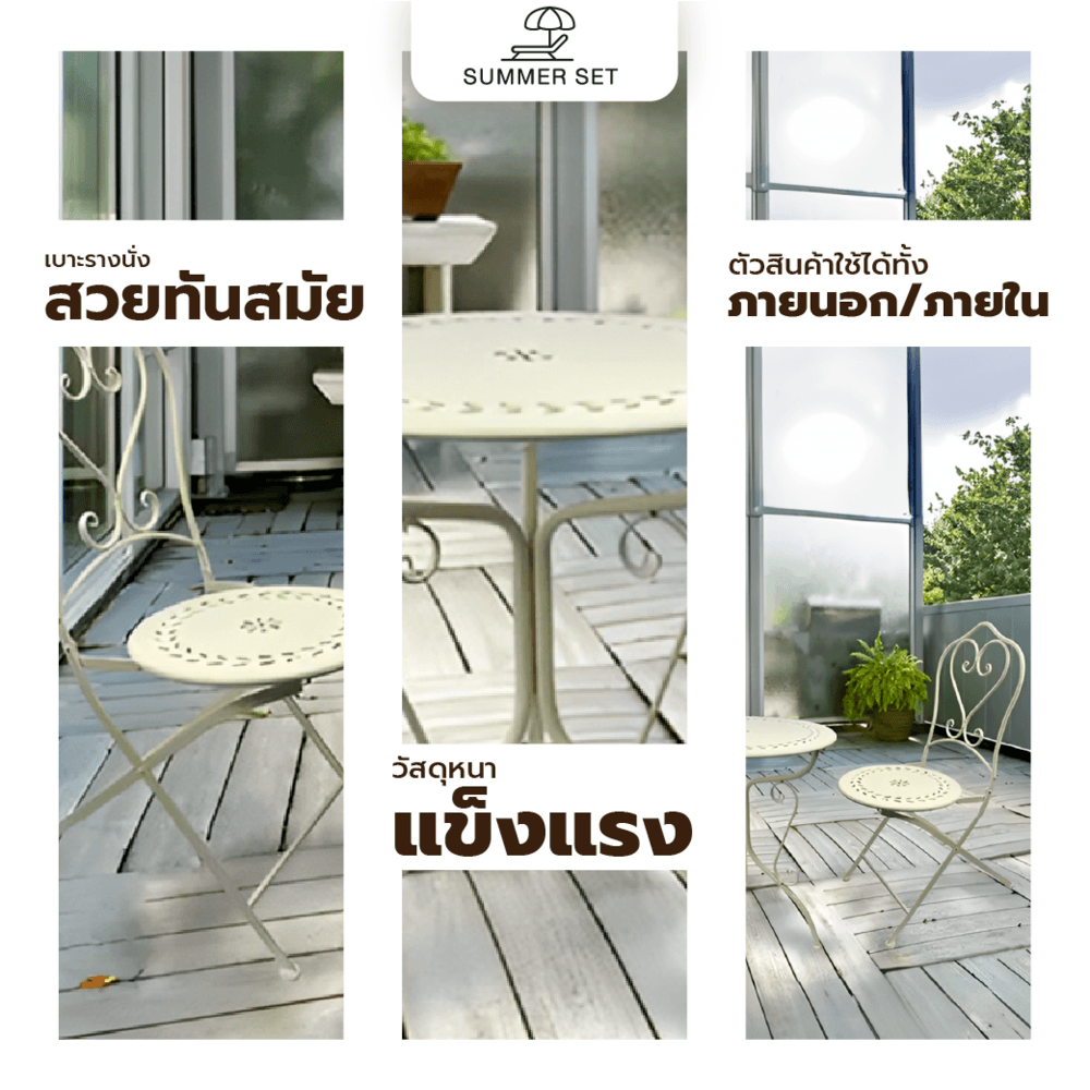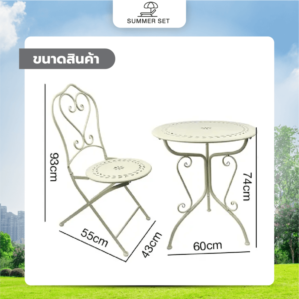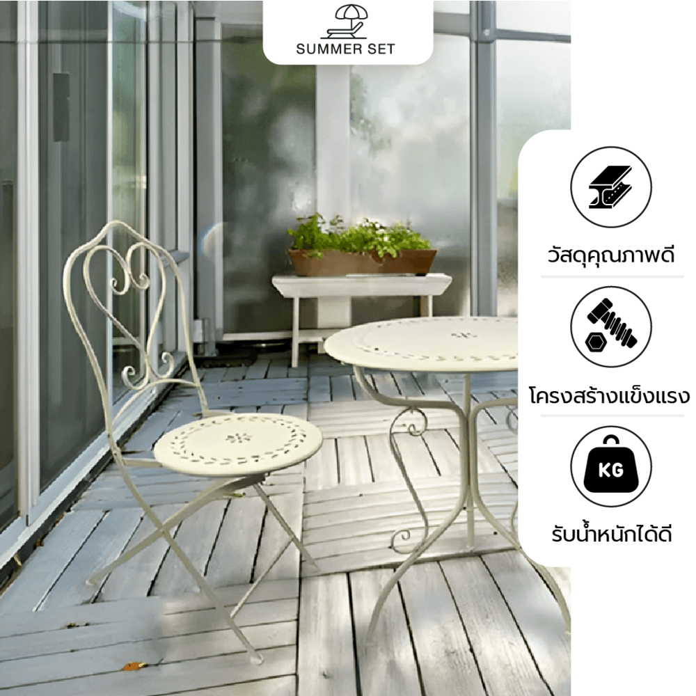 SUMMER SET ชุดโต๊ะสนาม 2 ที่นั่ง รุ่น SAWA โต๊ะ: 60x60x74 ซม. เก้าอี้ : 43x55x93 ซม. สีเบจ