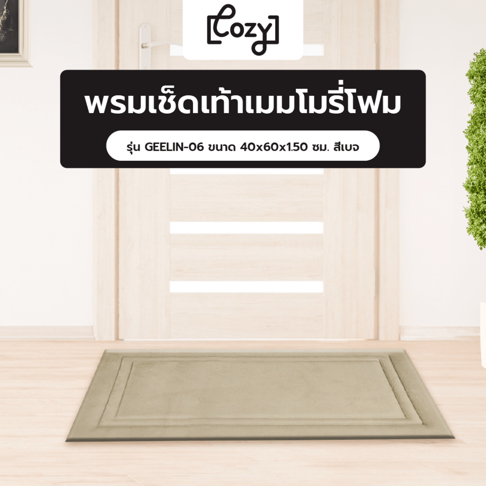 COZY พรมเช็ดเท้าเมมโมรี่โฟม รุ่น GEELIN-06 ขนาด 40x60x1.50 ซม. สีเบจ