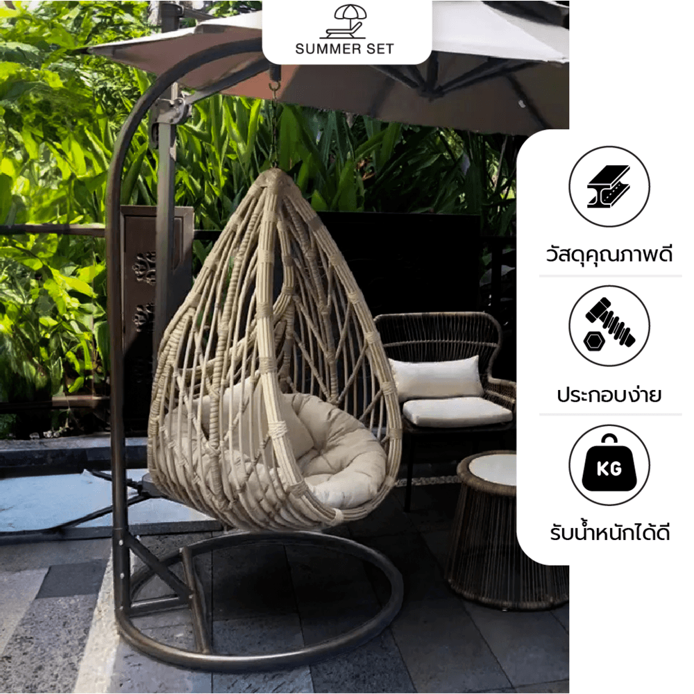 SUMMER SET ชิงช้ารังนก รุ่น WIDEE ขนาด 105x75x204 ซม. สีเบจ