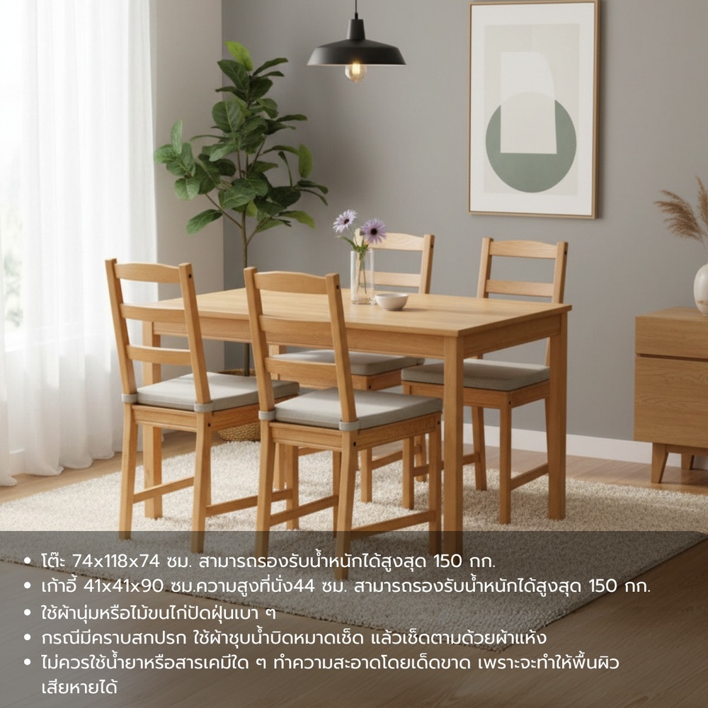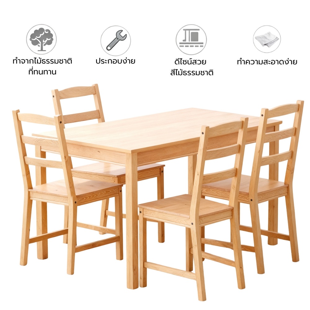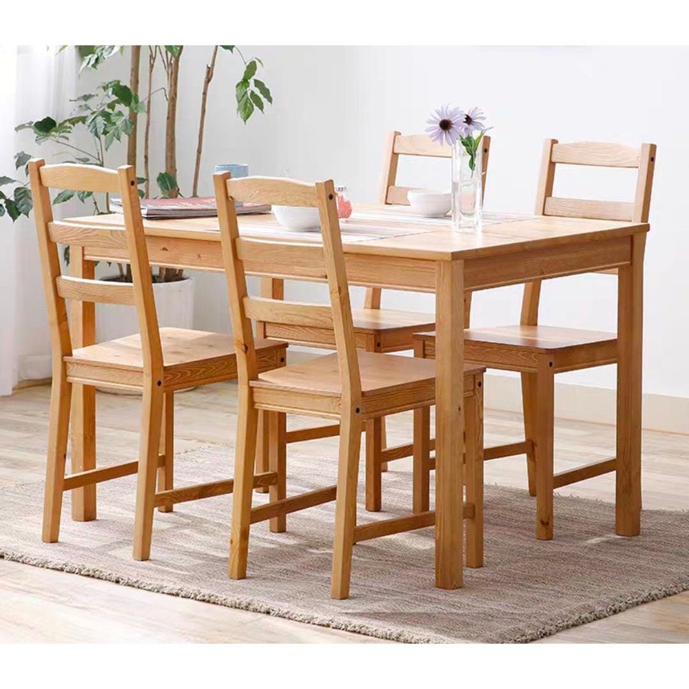 ชุดโต๊ะอาหารไม้สน(Pine wood) ประกอบด้วย โต๊ะ 1 + เก้าอี้ 4 ตัว