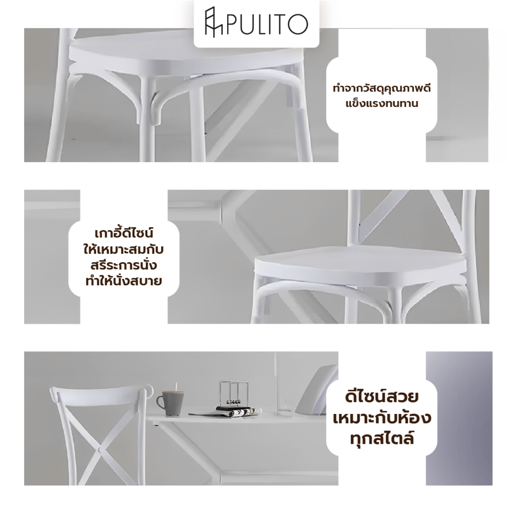 PULITO เก้าอี้จัดเลี้ยง รุ่น PC1001-WH ขนาด 48×52×90 ซม.สีขาว