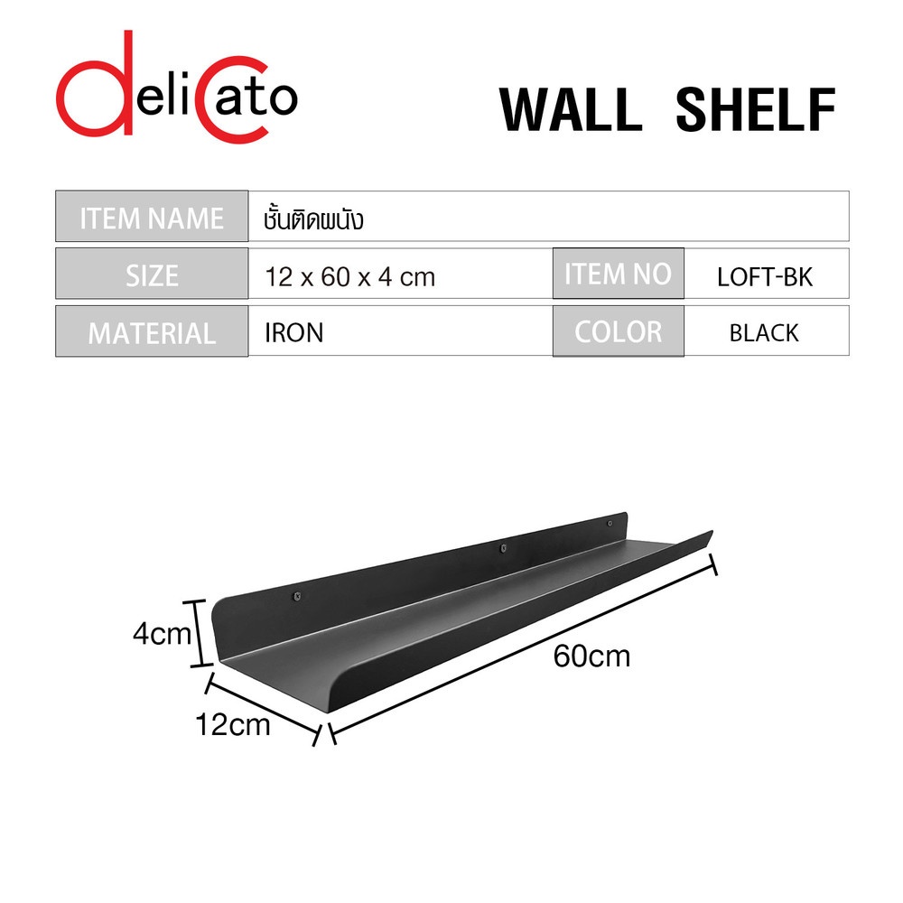 DELICATO ชั้นติดผนัง รุ่น LOFT-BK ขนาด 12×60×4ซม. สีดำ