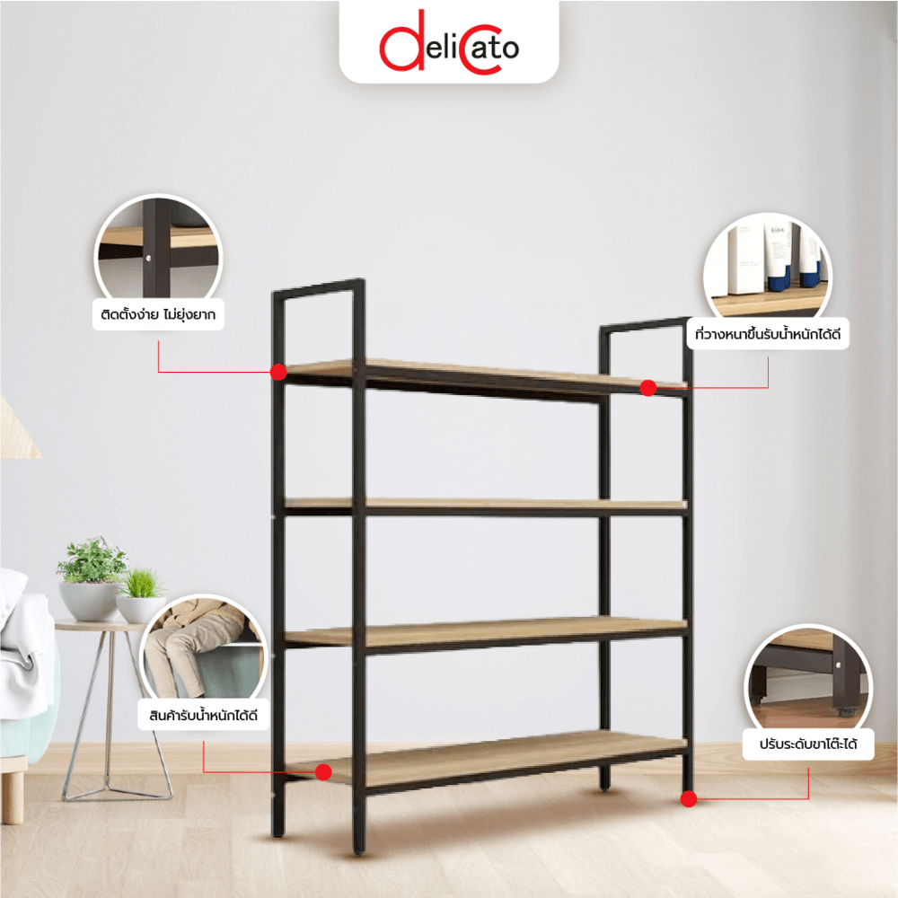 Delicato ชั้นวางของอเนกประสงค์ 4 ชั้น รุ่น HY05025 ขนาด 30x120x145 ซม. สีไม้