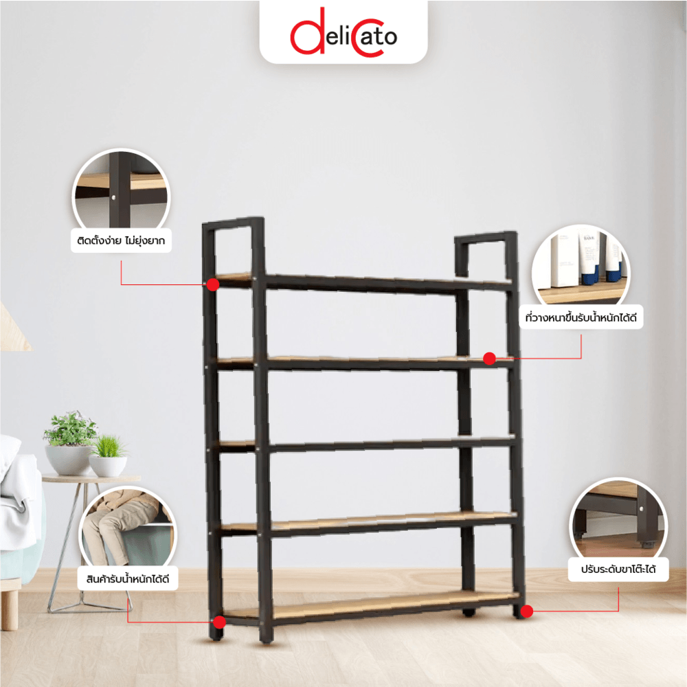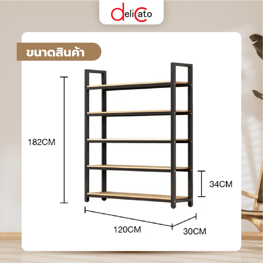 Delicato ชั้นวางของอเนกประสงค์ 5 ชั้น รุ่น HY05026 ขนาด 30x120x182 ซม. สีไม้