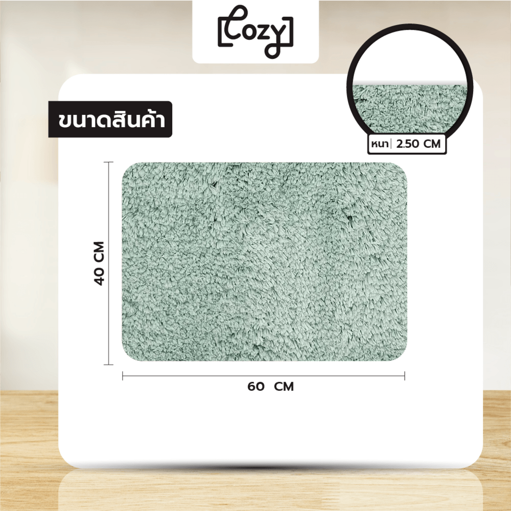 COZY พรมเช็ดเท้าขนนุ่ม รุ่น LOBBY-03 ขนาด 40× 60× 2.5ซม. สีเขียว