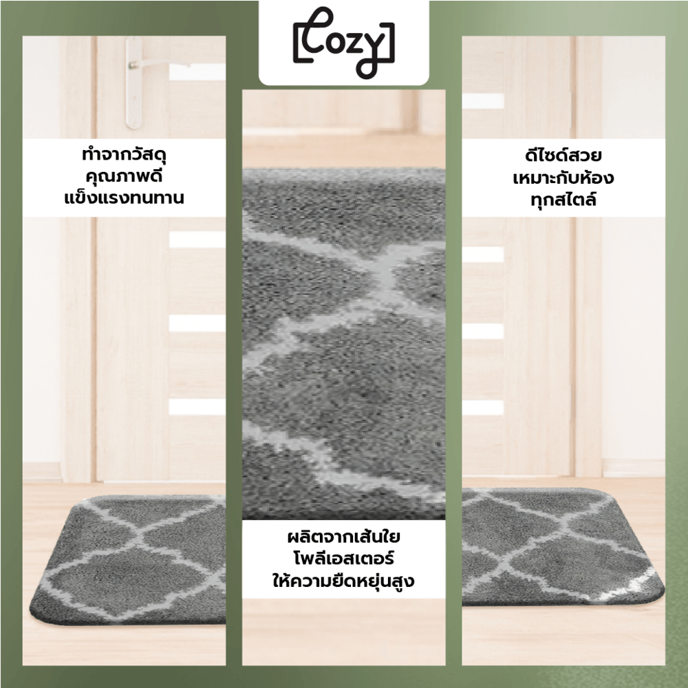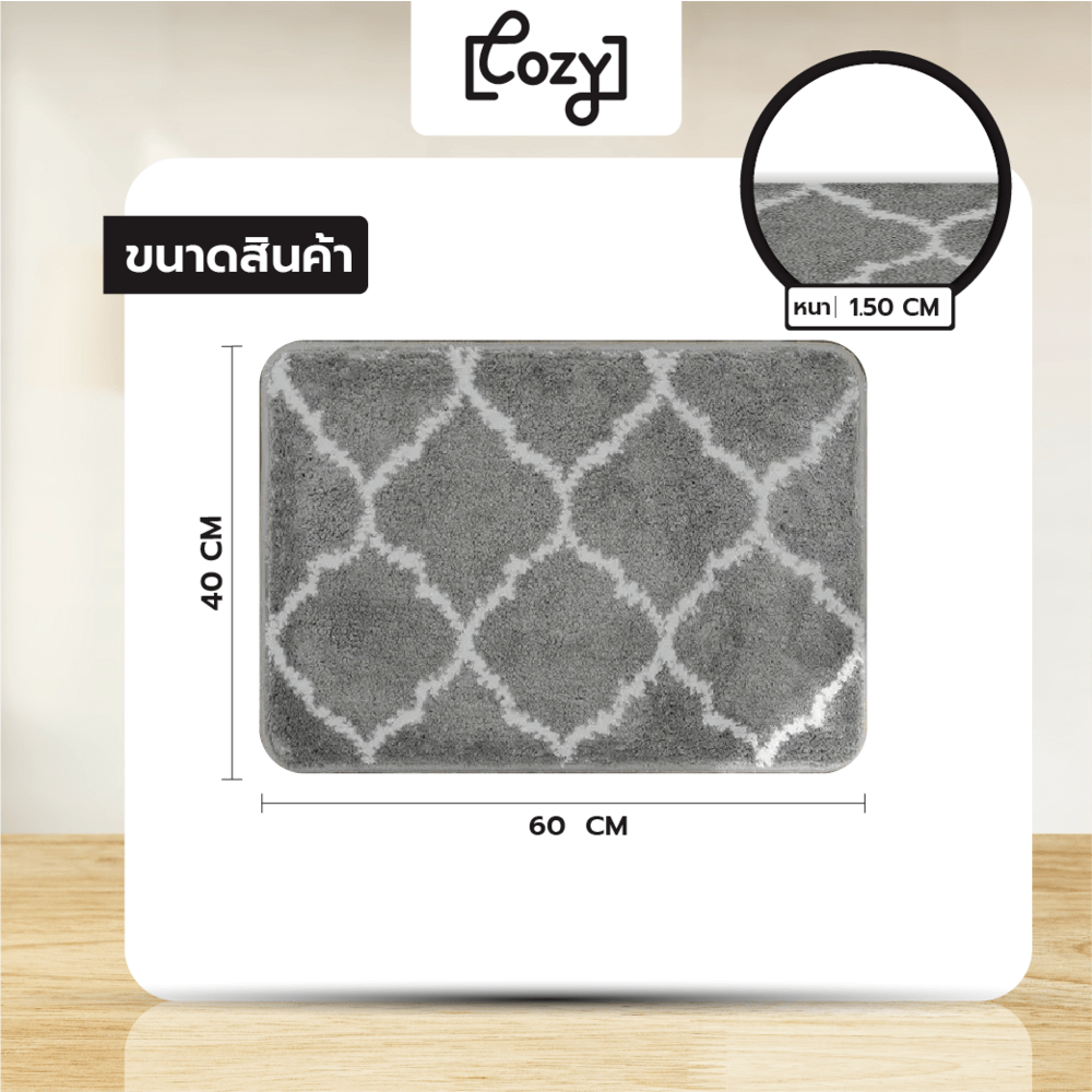 COZY พรมเช็ดเท้าขนนุ่ม รุ่น ORA01ขนาด 40×60×1.5ซม. สีเทา