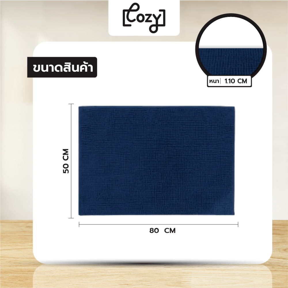 COZY พรมเช็ดเท้าขนนุ่ม รุ่น GINA02 ขนาด 40×60×1.1ซม. สีน้ำเงิน