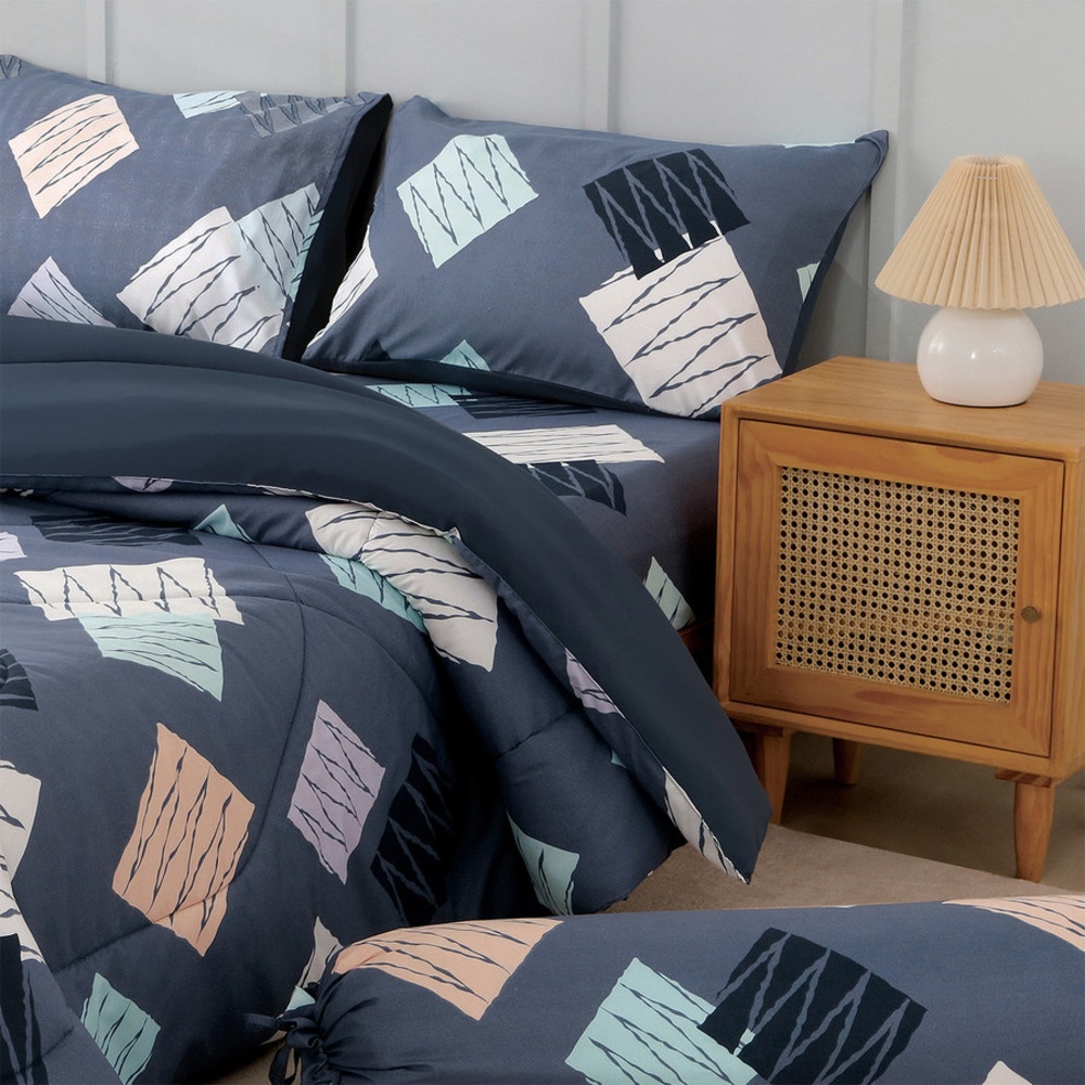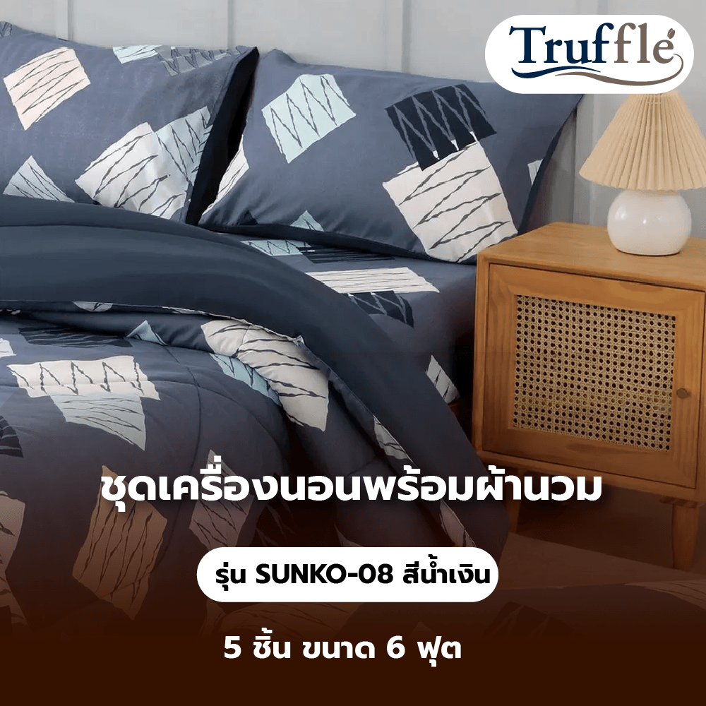 Truffle ชุดเครื่องนอนพร้อมผ้านวม 5 ชิ้น ขนาด 6 ฟุต รุ่น SUNKO-08 สีน้ำเงิน