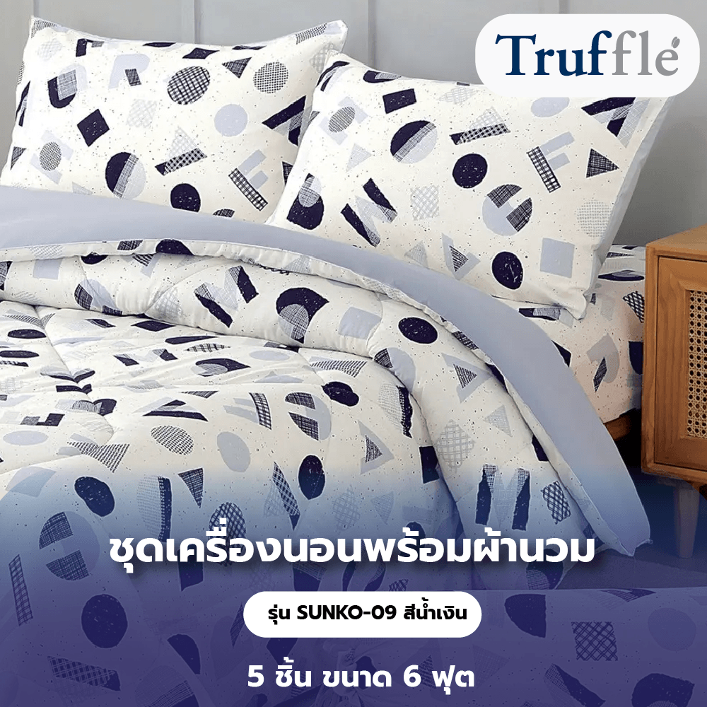 Truffle ชุดเครื่องนอนพร้อมผ้านวม 5 ชิ้น ขนาด 6 ฟุต รุ่น SUNKO-09 สีน้ำเงิน