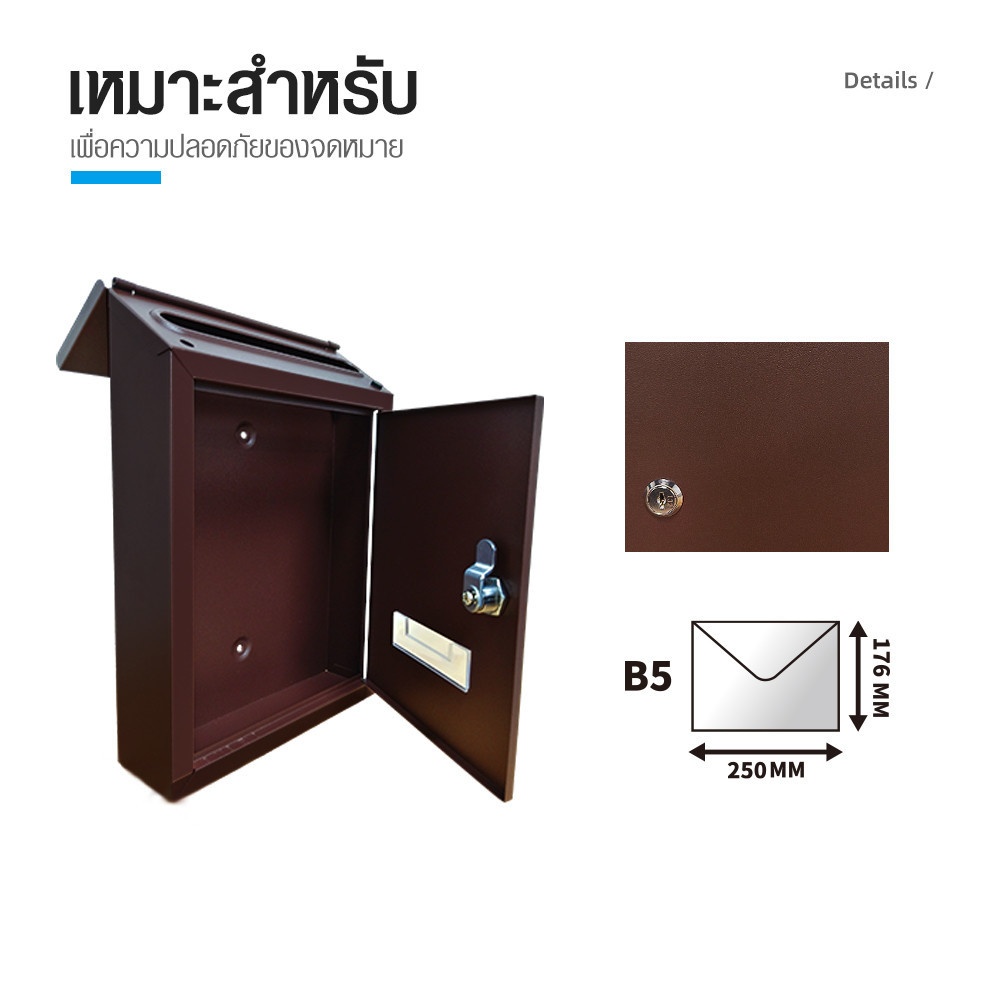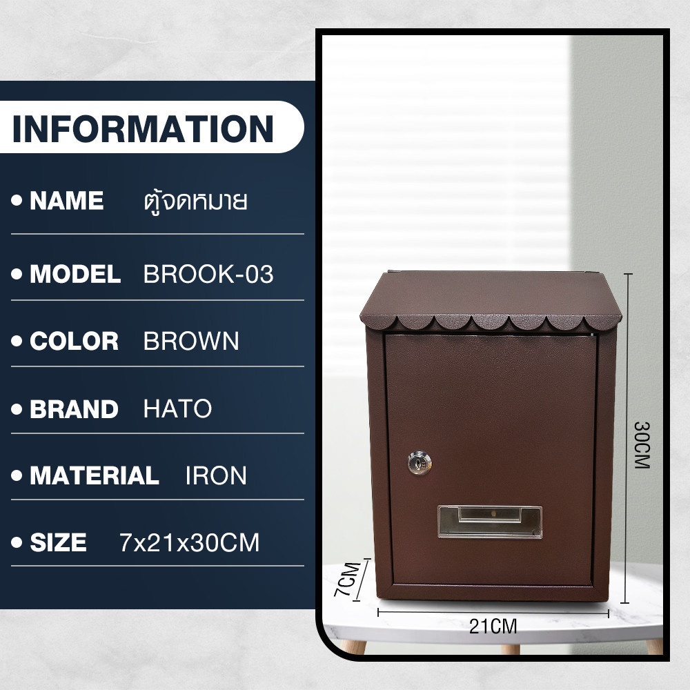 HATO ตู้จดหมาย รุ่น BROOK-03 ขนาด 7x21x30 ซม.น้ำตาล