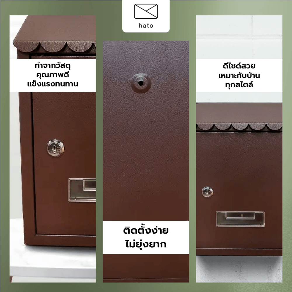 ตู้จดหมาย HATO ผลิตจากวัสดุคุณภาพ เหล็กเคลือบที่ทนต่อการเกิดสนิมและการกัดกร่อน ทนต่อทุกสภาพอากาศทั้งร้อน ฝน และแสงแดด