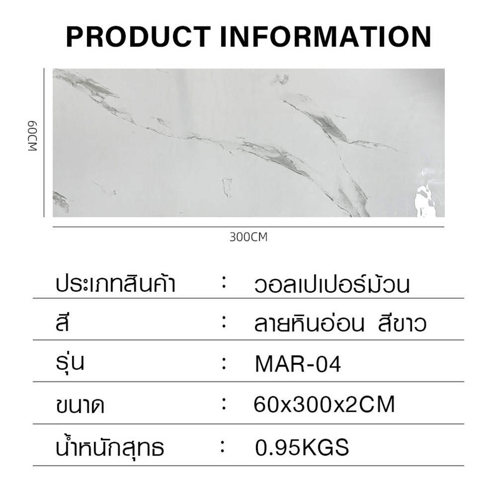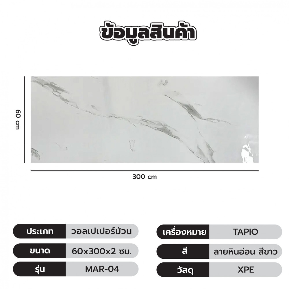TAPIO วอลเปเปอร์ม้วน รุ่น MAR-04 ขนาด 60ซม.x3ม. ลายหินอ่อน สีขาว