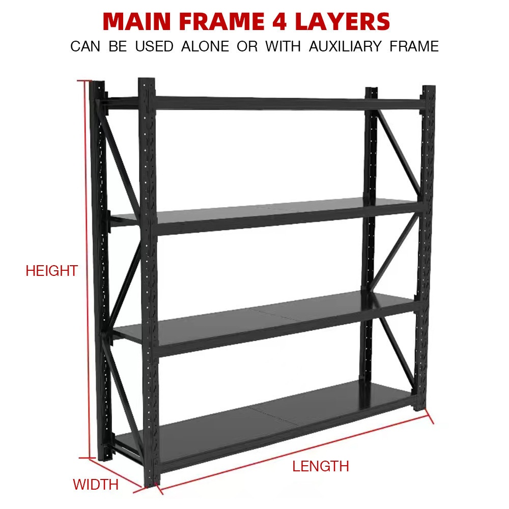 (1/4) HUMMER ชั้นวางของอเนกประสงค์เหล็ก 4 ชั้น รุ่น KENZO-02 ขนาด 0.5x2x2M สีดำ