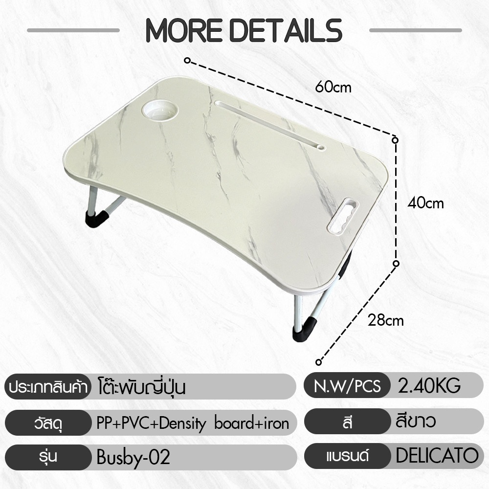DELICATO โต๊ะพับญี่ปุ่น รุ่น Busby-02 ขนาด 40x60x28 ซม. สีขาว