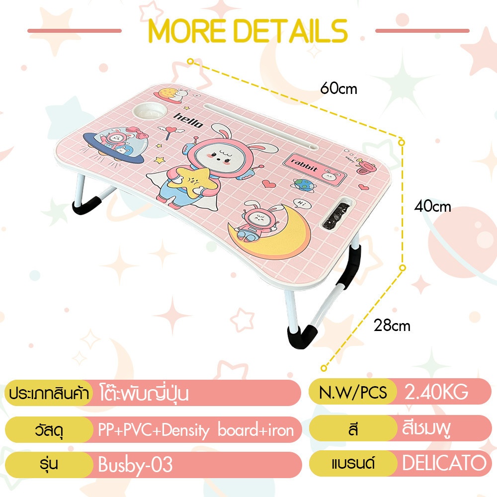 DELICATO โต๊ะพับญี่ปุ่น รุ่น Busby-03 ขนาด 40x60x28 ซม. สีชมพู