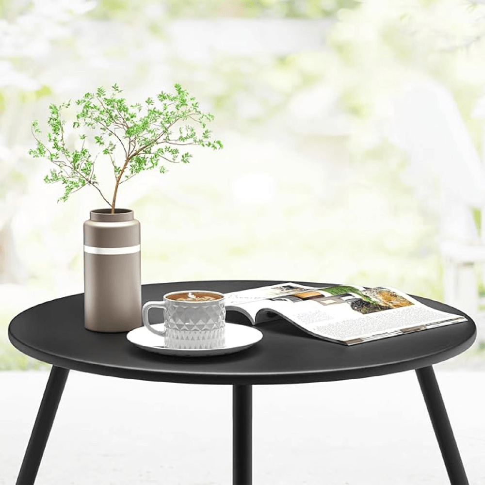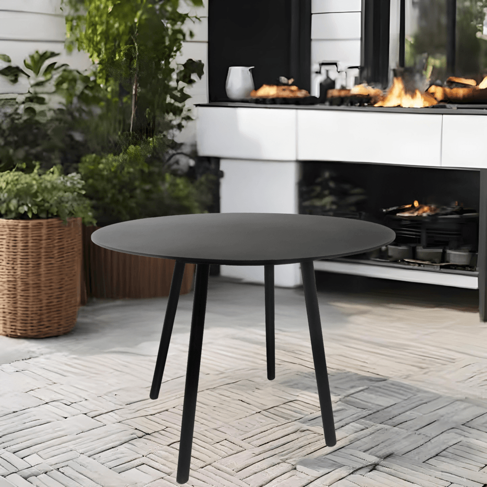 พื้นผิวของโต๊ะถูกเคลือบด้วย สีดำด้าน (Matte Black) ที่ให้ความรู้สึกหรูหราและคลาสสิก สามารถเข้ากับเฟอร์นิเจอร์อื่นๆ ได้ง่าย ไม่ว่าจะเป็นสไตล์โมเดิร์น มินิมอล หรือทรอปิคอล ตัวโต๊ะออกแบบมาให้มีความมั่นคง ไม่โยกเยก รองรับน้ำหนักได้ดี พร้อมมุมโต๊ะที่เรียบมน ไม่คม จึงปลอดภัยสำหรับการใช้งานทั้งในบ้านและกลางแจ้ง