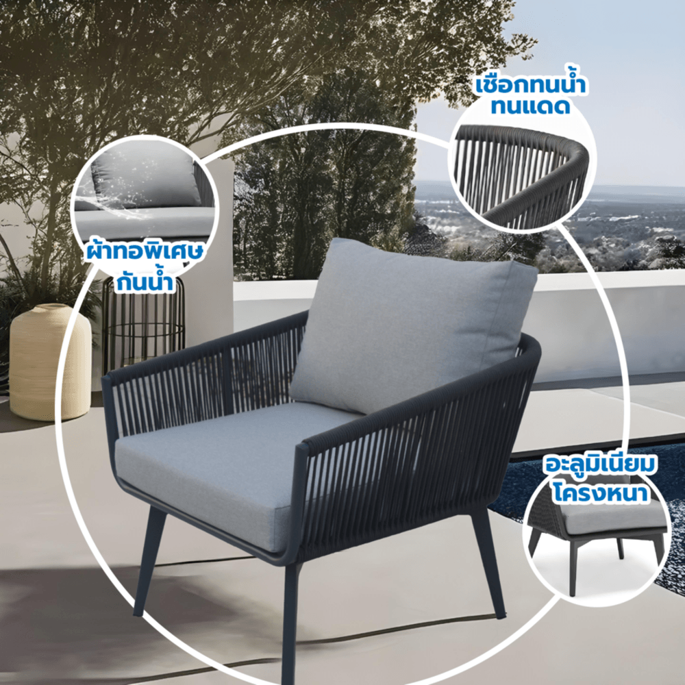 เป็นเก้าอี้ Outdoor ที่ออกแบบมาเพื่อตอบโจทย์การใช้งานทั้งภายในและภายนอกอาคาร ด้วยโครงสร้างที่แข็งแรง ทนทาน และการออกแบบที่สวยงาม ช่วยเพิ่มความหรูหราให้กับทุกพื้นที่พักผ่อน เก้าอี้รุ่นนี้เหมาะสำหรับการจัดวางในสวน ระเบียง ริมสระน้ำ หรือแม้แต่ภายในบ้านและร้านกาแฟที่ต้องการเฟอร์นิเจอร์ที่ทั้งดูดีและใช้งานได้จริง