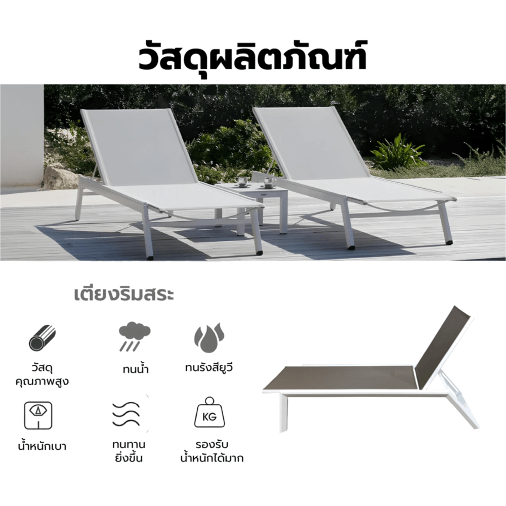 เหมาะสำหรับ: ริมสระว่ายน้ำ, พื้นที่สวน, ดาดฟ้า, ระเบียง, รีสอร์ต หรือบ้านพักตากอากาศ