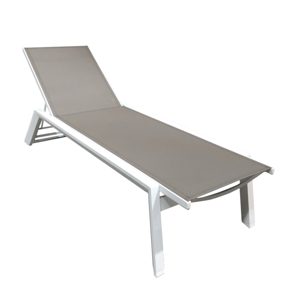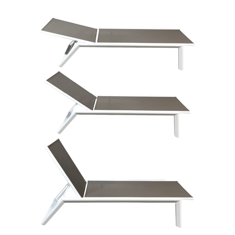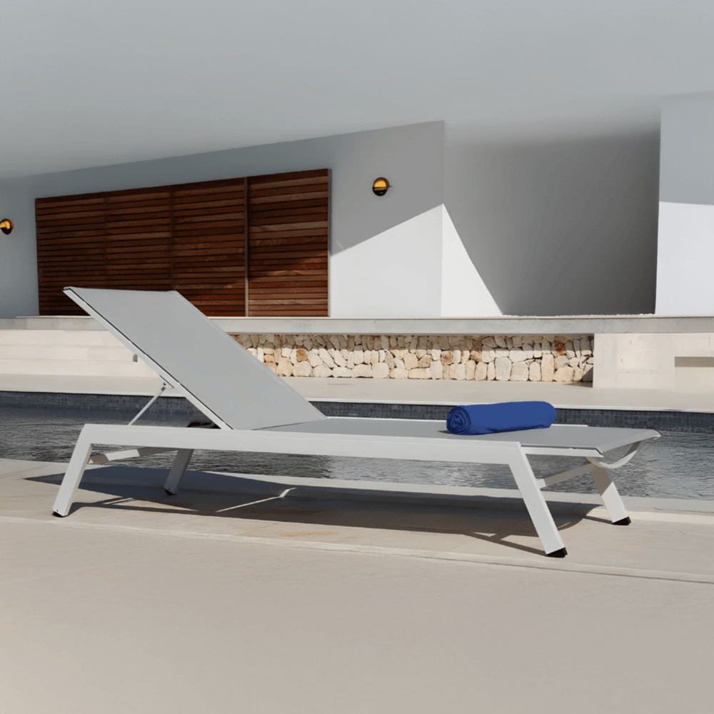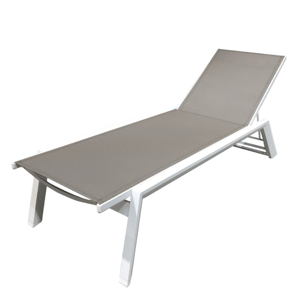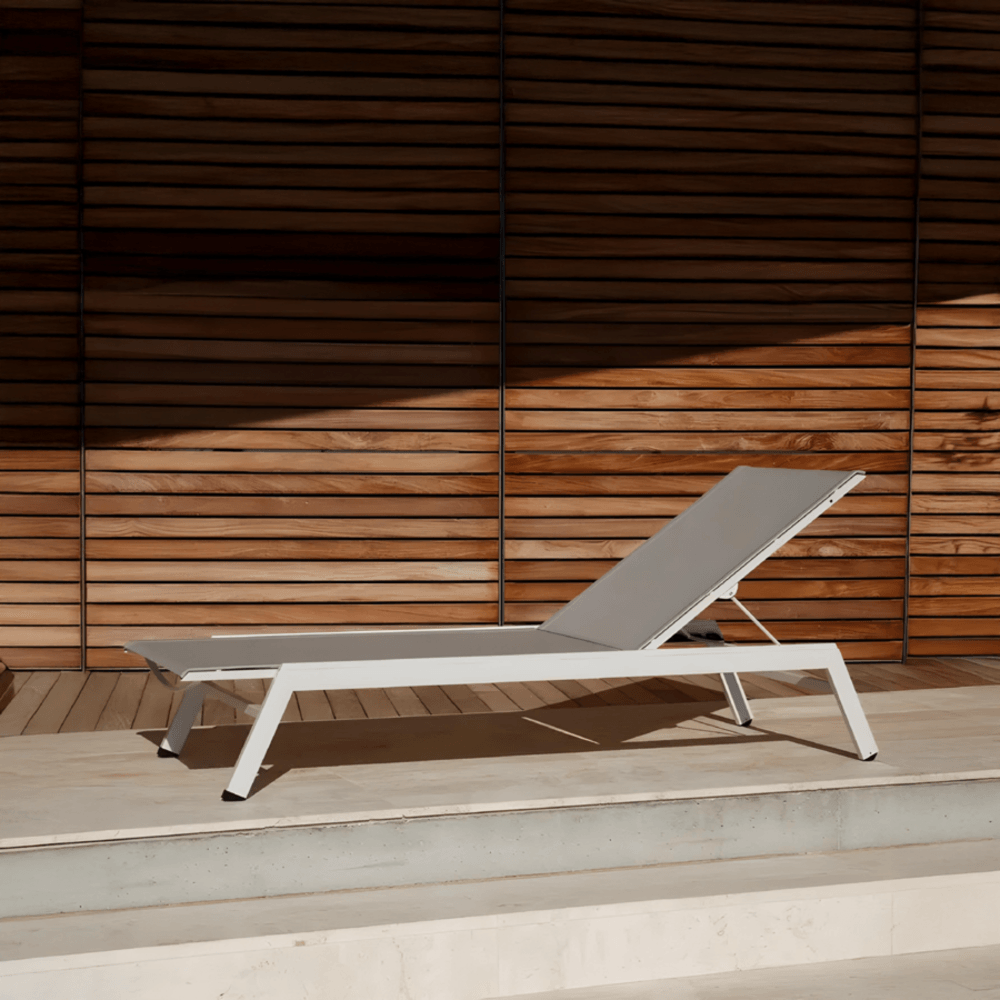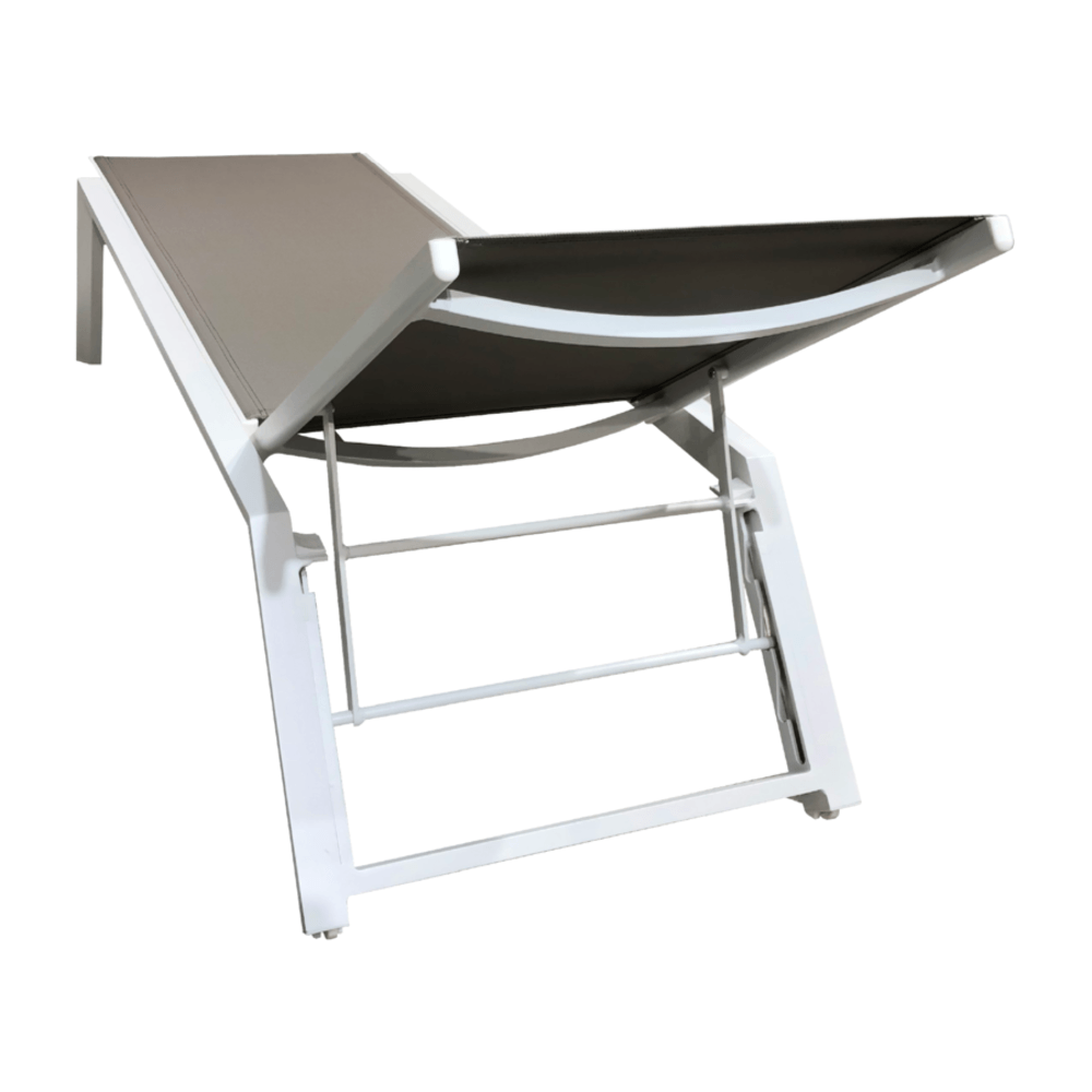 โครงสร้างหลักของเตียงผลิตจาก อลูมิเนียมเคลือบผง (Powder Coated Aluminium Frame) ที่มีความแข็งแรง ทนทานต่อสภาพอากาศ และไม่เป็นสนิม เหมาะสำหรับการใช้งานกลางแจ้งในระยะยาว ทั้งยังให้ความรู้สึกเรียบหรู ด้วยผิวสัมผัสแบบแมตต์สีขาวสะอาดตา