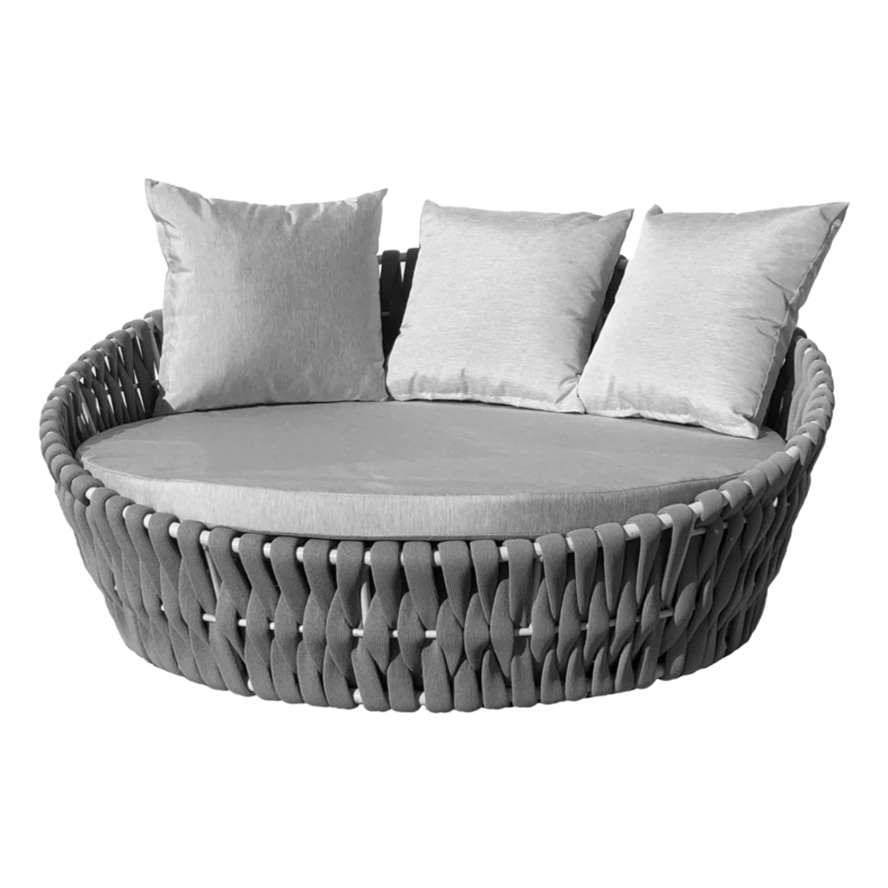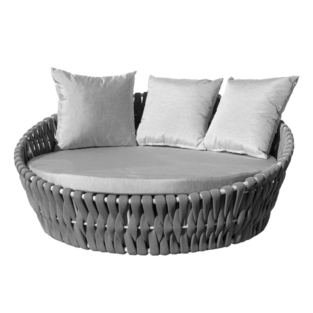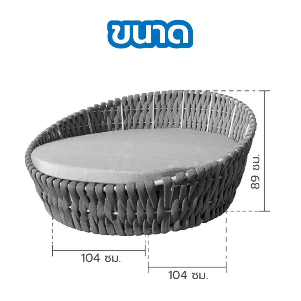 โครงสร้างของโซฟาทำจากอะลูมิเนียมเคลือบผงพิเศษ (Powder Coated Aluminium) ซึ่งมีความแข็งแรง ไม่เป็นสนิม และทนต่อแดดฝนได้ดี เหมาะกับสภาพอากาศในเมืองไทย ไม่ต้องกังวลเรื่องการดูแลรักษามากนัก ตัวโซฟามีน้ำหนักเบา จึงสามารถยกหรือเคลื่อนย้ายได้สะดวก