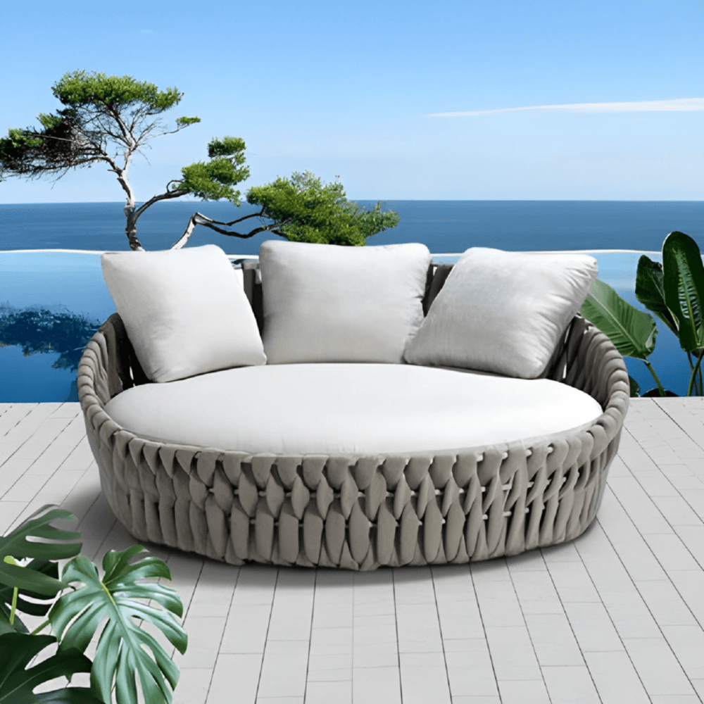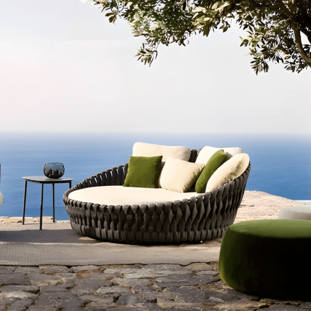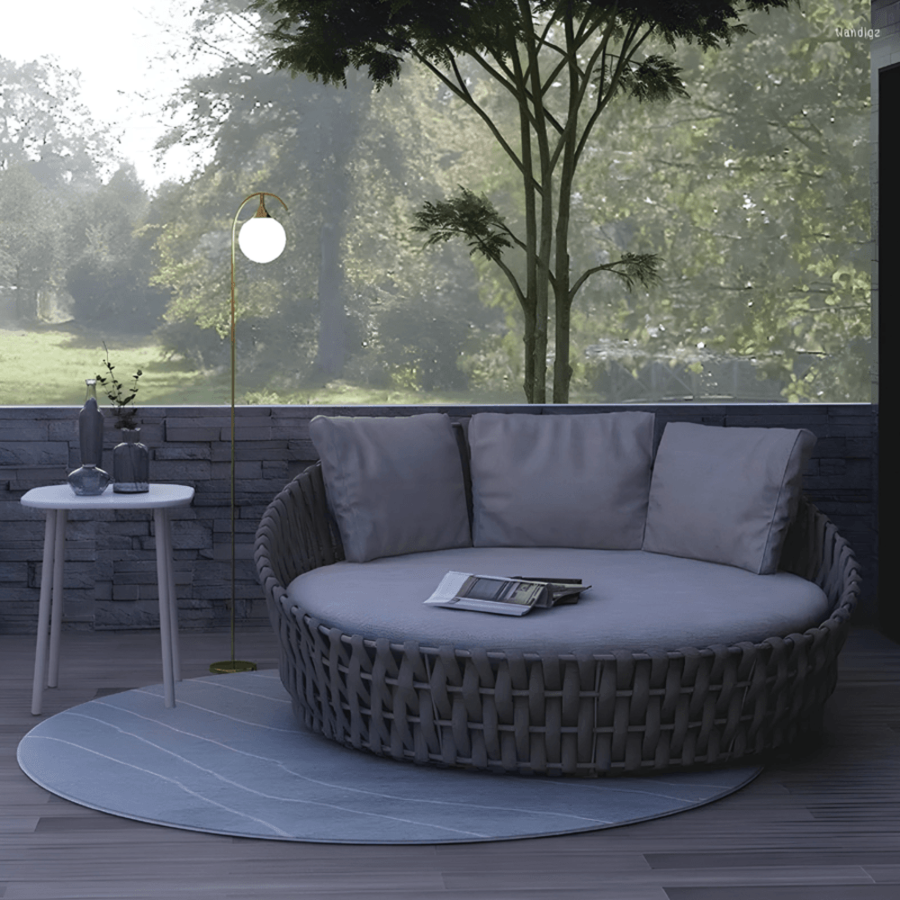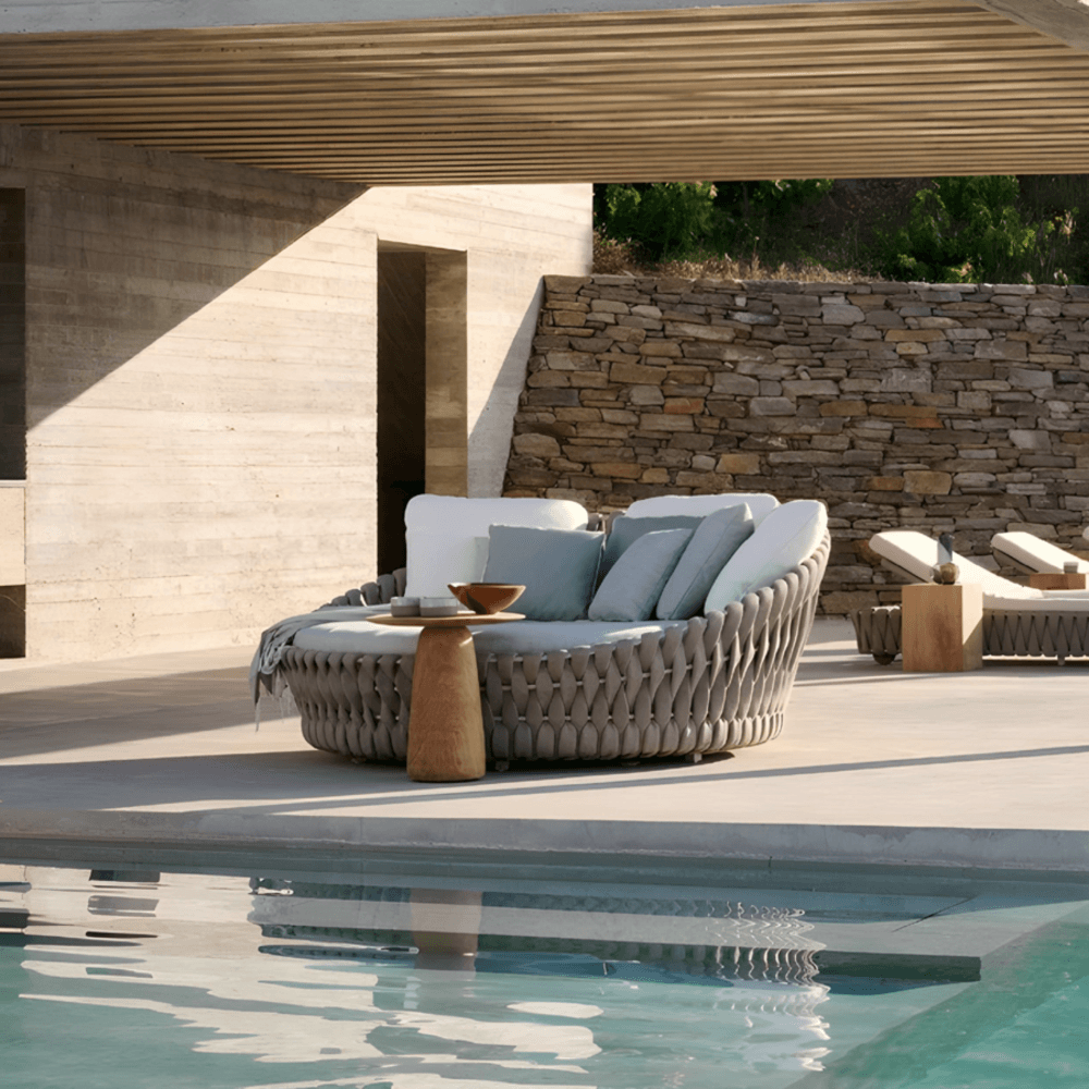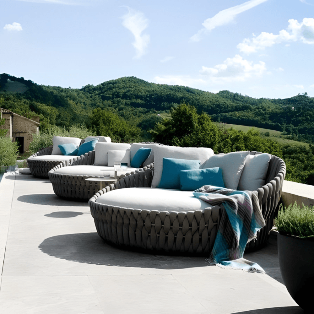 วางโซฟาในพื้นที่กลางแจ้ง เช่น สวน ระเบียง หรือริมสระน้ำ